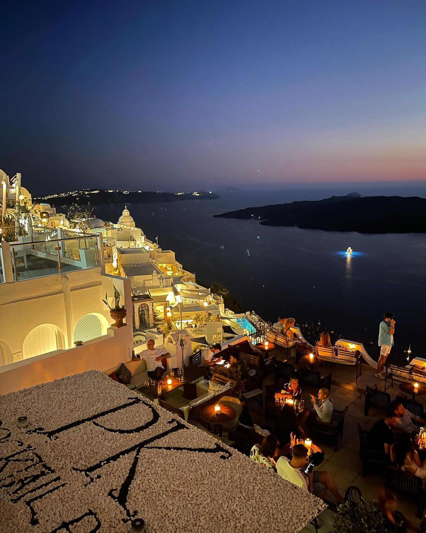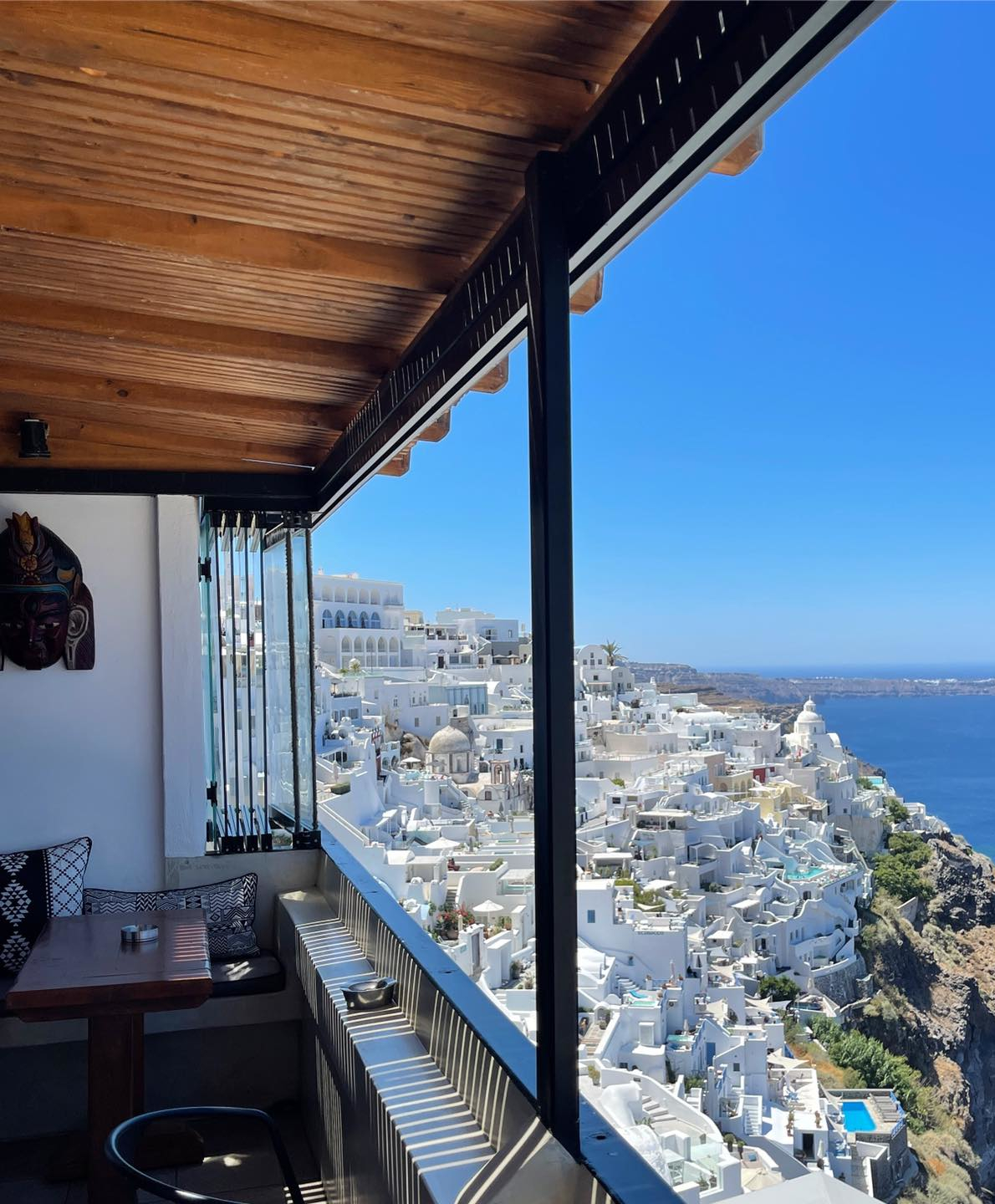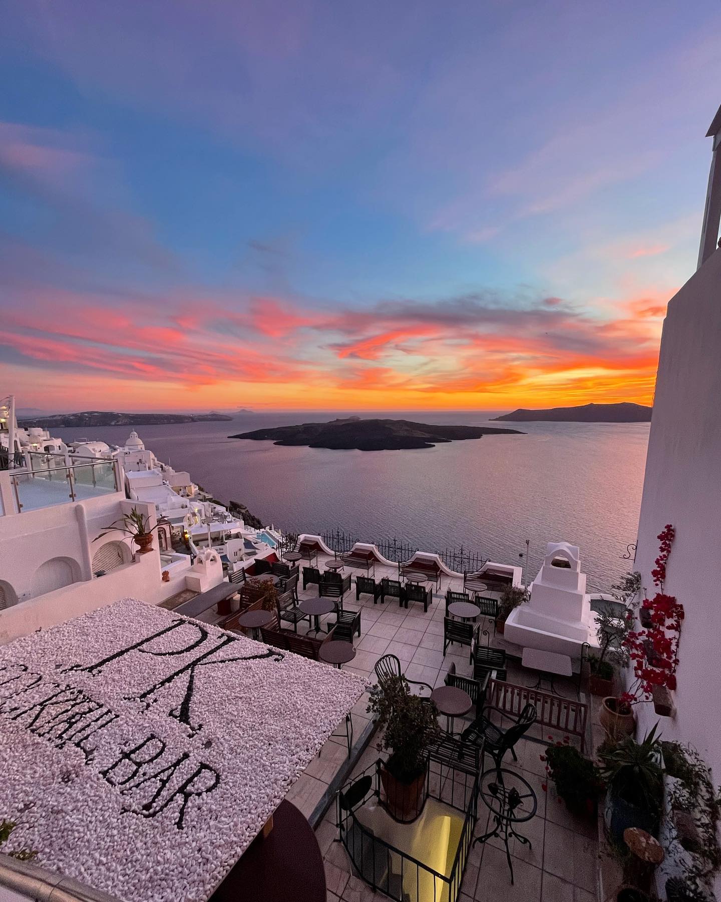 Located in the heart of Fira, Palia Kameni is a popular cocktail bar that affords incredible views of the caldera and town. The relaxed atmosphere is enhanced by the chilled playlist and signature cocktails. Ideal for a daytime coffee or a sunset cocktail, PK Bar provides impeccable service to make your visit extra special. It’s the perfect spot to enjoy a romantic date and book a front row seat for the sunset, which you can do easily online.
