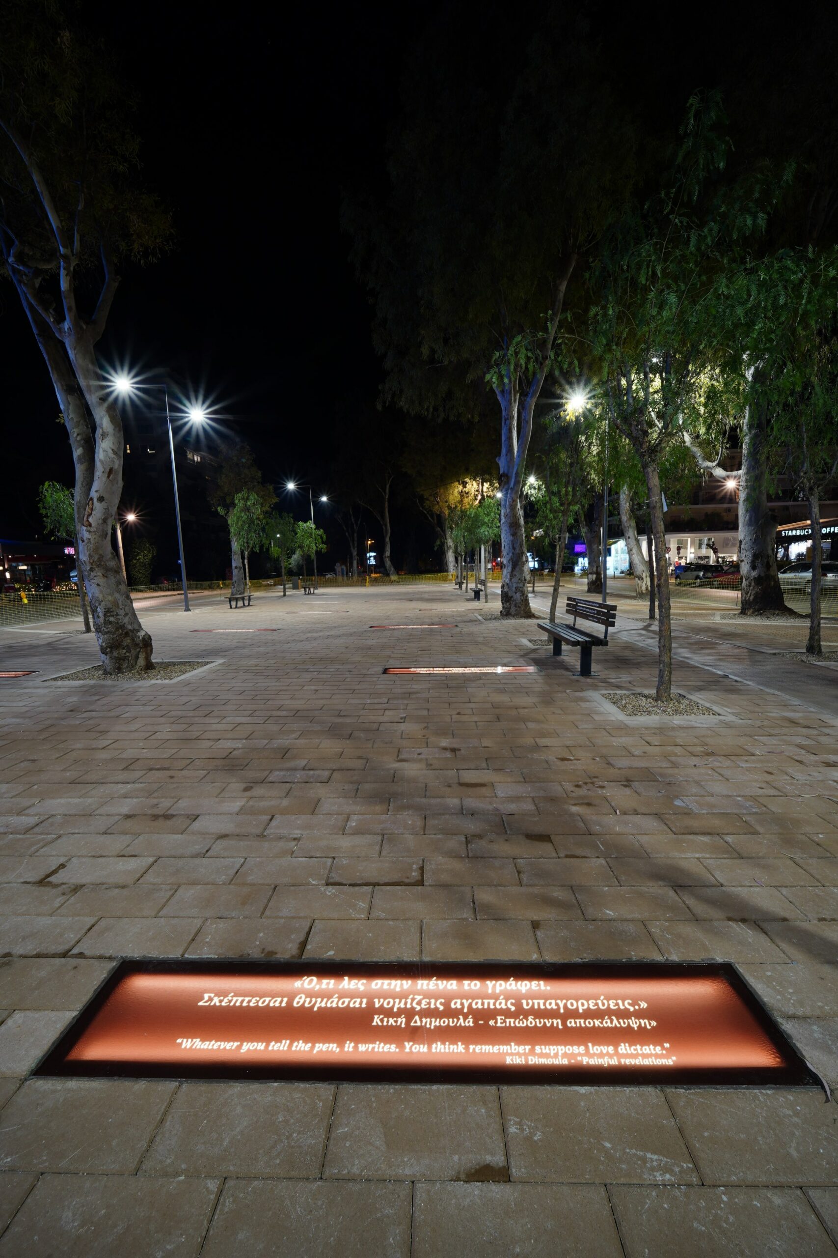 Lambraki Street used to suffer from car congestion, vehicles parked all over the place, including on the central reservation. This is no longer the case. Clear, free-flowing pavements and bicycle lanes have been developed along the central reservation area. Cars nowadays park at new peripheral spots, while stanzas by Greek poets are displayed on the pedestrianised street and benches. You can take a stroll and recall or discover important moments in Greek literature.