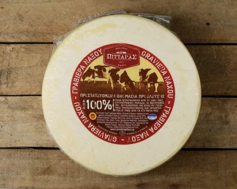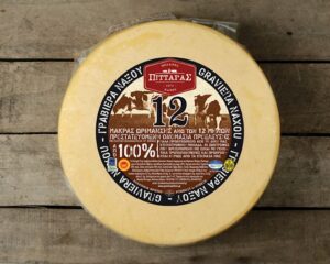 By the 1950s and early 1960s, organized production was underway, and in 1996 the cheese officially earned its PDO status. Over time, Graviera Naxou developed a distinct profile: firm yet elastic, pale yellow, dotted with tiny holes, and flavored with the subtle sweetness of the island’s pastures. Young wheels taste buttery and mild; older ones lean toward toasted nuts and warm caramel notes.