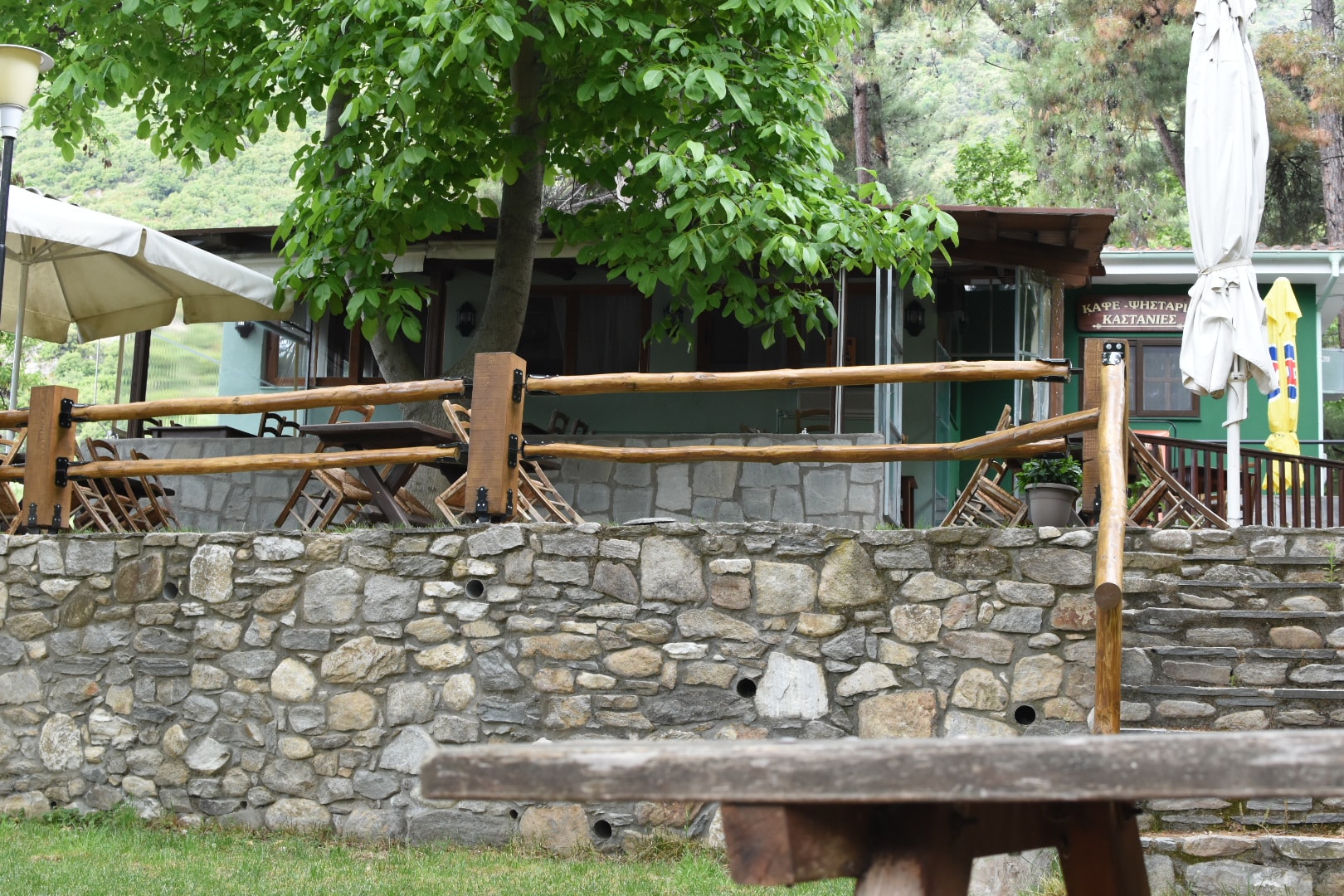 Among the chestnut, walnut fir and plane trees, in the area Kastanies, that also gives its name to Giorgos Xoulogis’ tavern – grill “Kastanies” (tel. 0030 25920 93687, 0030 6978003189) you can enjoy local grilled meats like beef steak, rib eye and also roast lamb and pork shank (on Sundays) and local recipes like escargots in tomato sauce served with boiled greens and herbs or “prassoudia” (fried leeks with tarama salad) – these you need to order in advance. A great advantage: you can order the steak exactly as you like it.