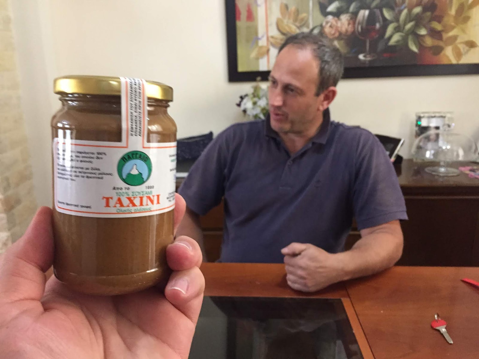 Before talking about the product, we should mention that the producer, Mr Floros Florou is a very special person. Apart from a tahini and halva producer, he is a beekeeper, a teacher (he teaches math) and 5 years ago he got his degree Theology. Together with his wife Despina who is in charge of the administration work of the business, they keep their large family – ten children and three grandchildren – together.