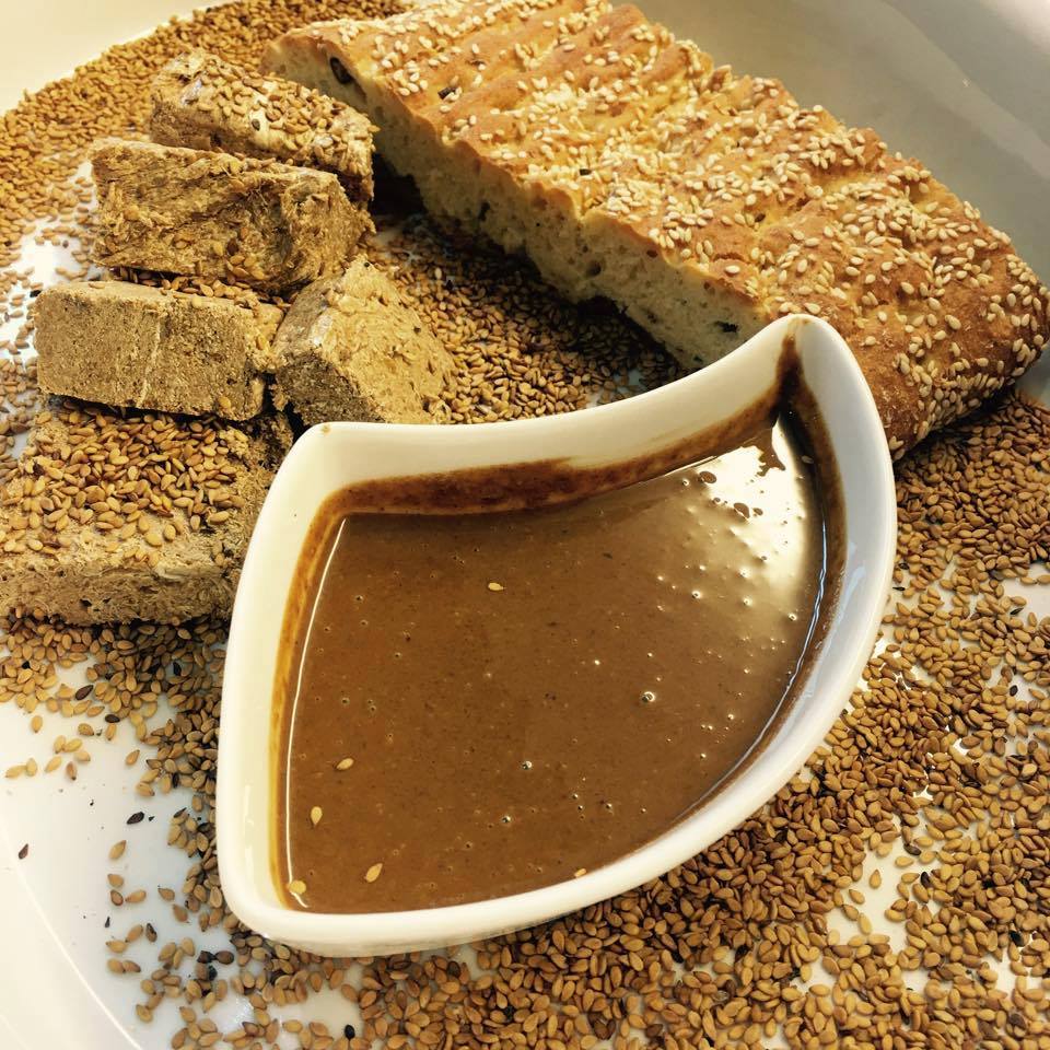 The handmade organic whole-grain tahini he produces is a family matter for more than 100 years. Fragrant, with texture, and the earthy nutty flavour of sesame, it’s a true delicacy. The producer grinds the sesame in watermills. His grandfather bought the first watermill in 1880 from a Turkish mand for 40 lire, and now the family owns four watermills and one electric mill. His dream is to acquire ten mills, one for each of his children and to keep on producing this amazing product using the old way that has so many advantages: the sesame is roasted in a wood burning oven so that it dries completely, and it gets the wood fragrances, while when the sesame is grounded between the large stones of the mill the temperature does not rise too much and thus the aromas, the flavour and the overall quality remains the same.