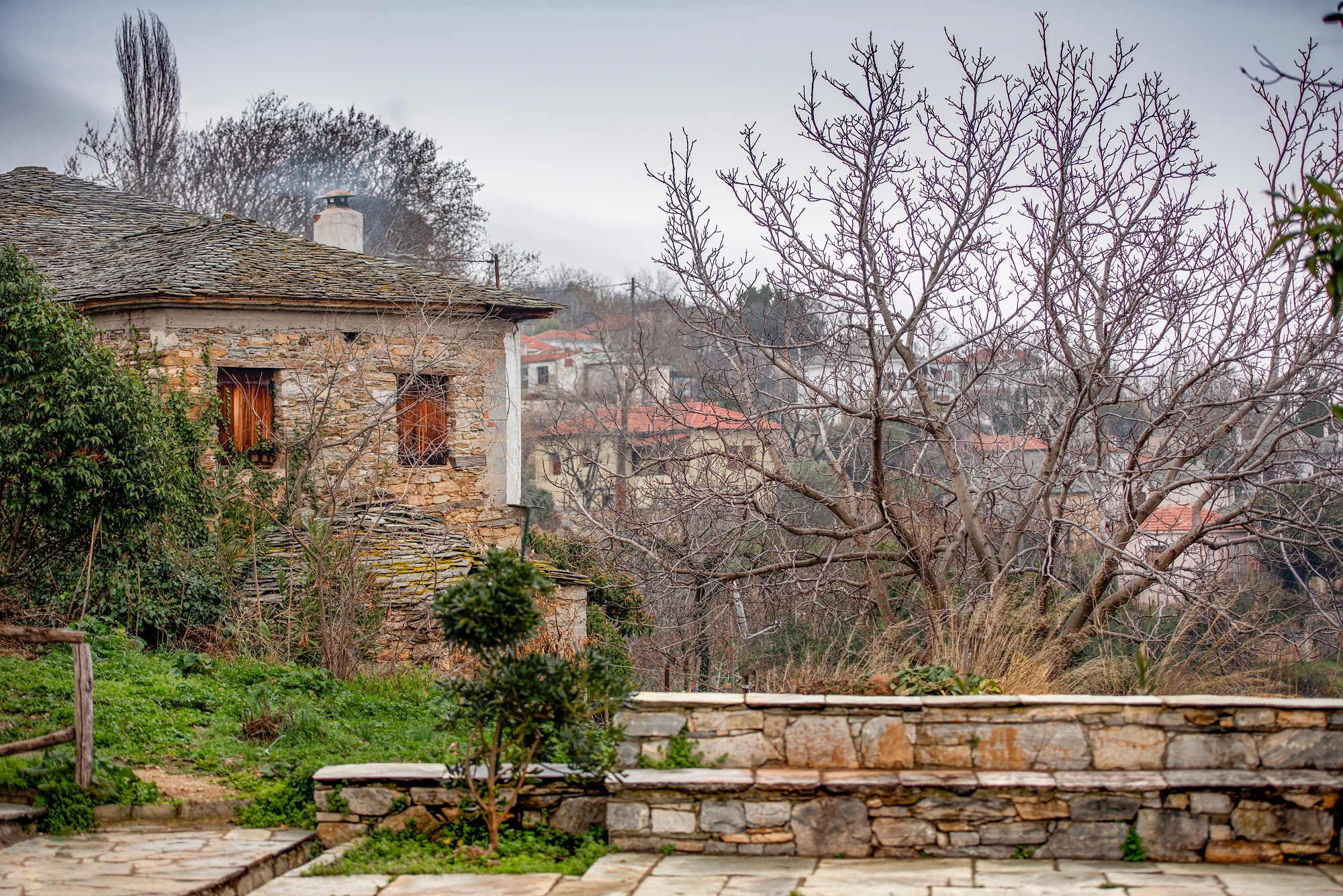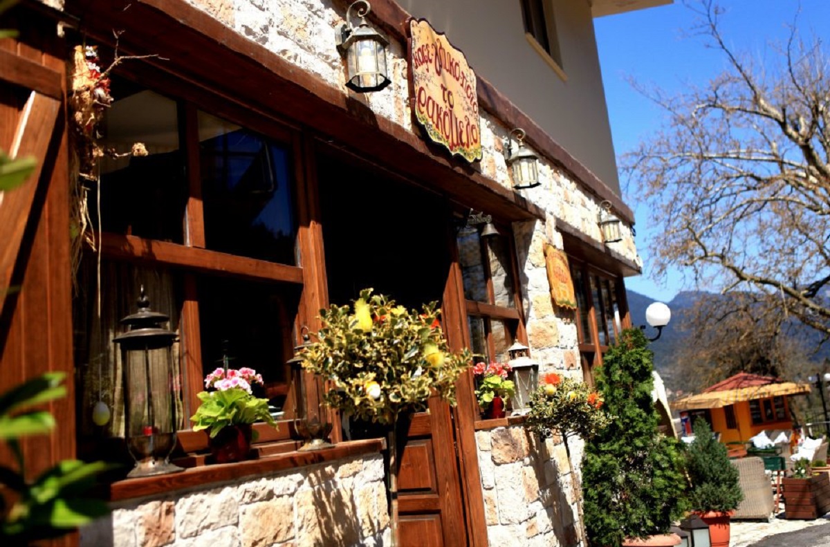 The owners of To Palio Kafeneio – Ta Glyka Tis Fofos have shown great affection to preserve the property’s features, including old wooden ceilings, as well as a fireplace and wood heaters, for a nostalgic feel.