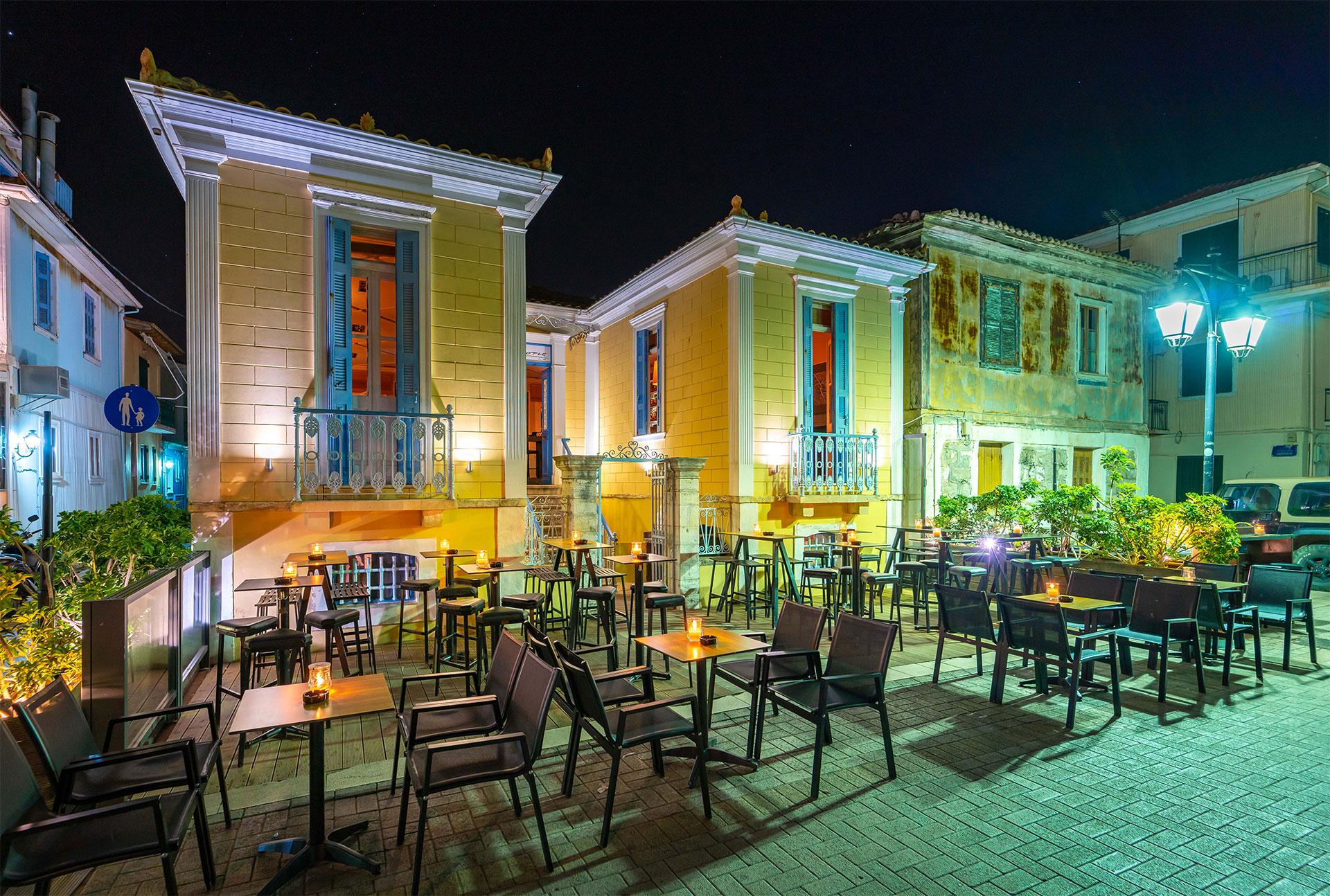 The bar is named after the Greek word for “maps,” inspired by the owners’ love for travel and exploration. Housed in a beautifully restored neoclassical building from the 1920s, it is one of the oldest establishments on the island. With its picturesque blue shutters, Xartes Bar offers stunning views of the lagoon and a dreamy atmosphere that will transport you to far-off places. From morning to night, Xartes Bar serves up a range of delicious breakfast options, snacks, drinks, cocktails, and refreshments, making it the perfect spot for any time of day. Whether you’re looking for a relaxing morning coffee or an evening cocktail with friends, Xartes Bar offers a unique and memorable experience.