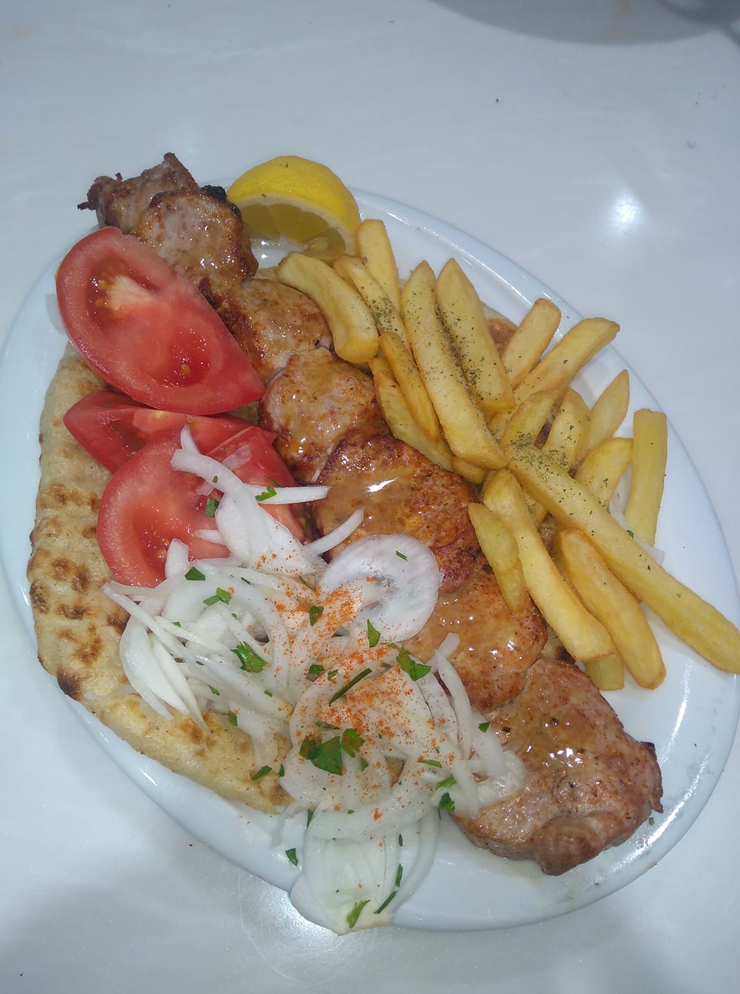 Family-run since 1879, Bairaktaris is the other half of Monastiraki’s souvlaki legend. Inside, old photos and vintage mirrors tell its story, while the open grill works nonstop. Order pork gyros or kebab with fries and tzatziki, pair it with a carafe of house wine, and sit outside for a ringside view of the square. Time-tested, satisfying, and full of local color.
