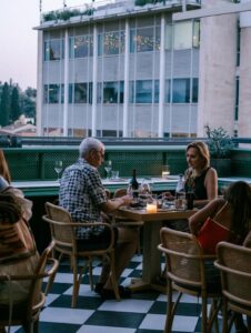 High above Mitropoleos Street, The Zillers delivers one of Athens’ most graceful dining experiences. With its Michelin star and postcard-perfect view of the Acropolis, it balances modern technique with Greek clarity. Chef Vasilis Roussos designs two seasonal tasting menus—“Synthesis” and “Synecdoche”—that might include prawn tartare with citrus and bergamot, delicate fish with fennel, or local herbs reinvented in minimal compositions. The atmosphere is elegant yet unpretentious, with attentive service and soft lighting that turns the rooftop into a stage for the Parthenon’s nightly glow.