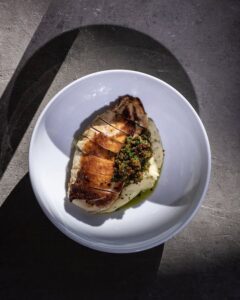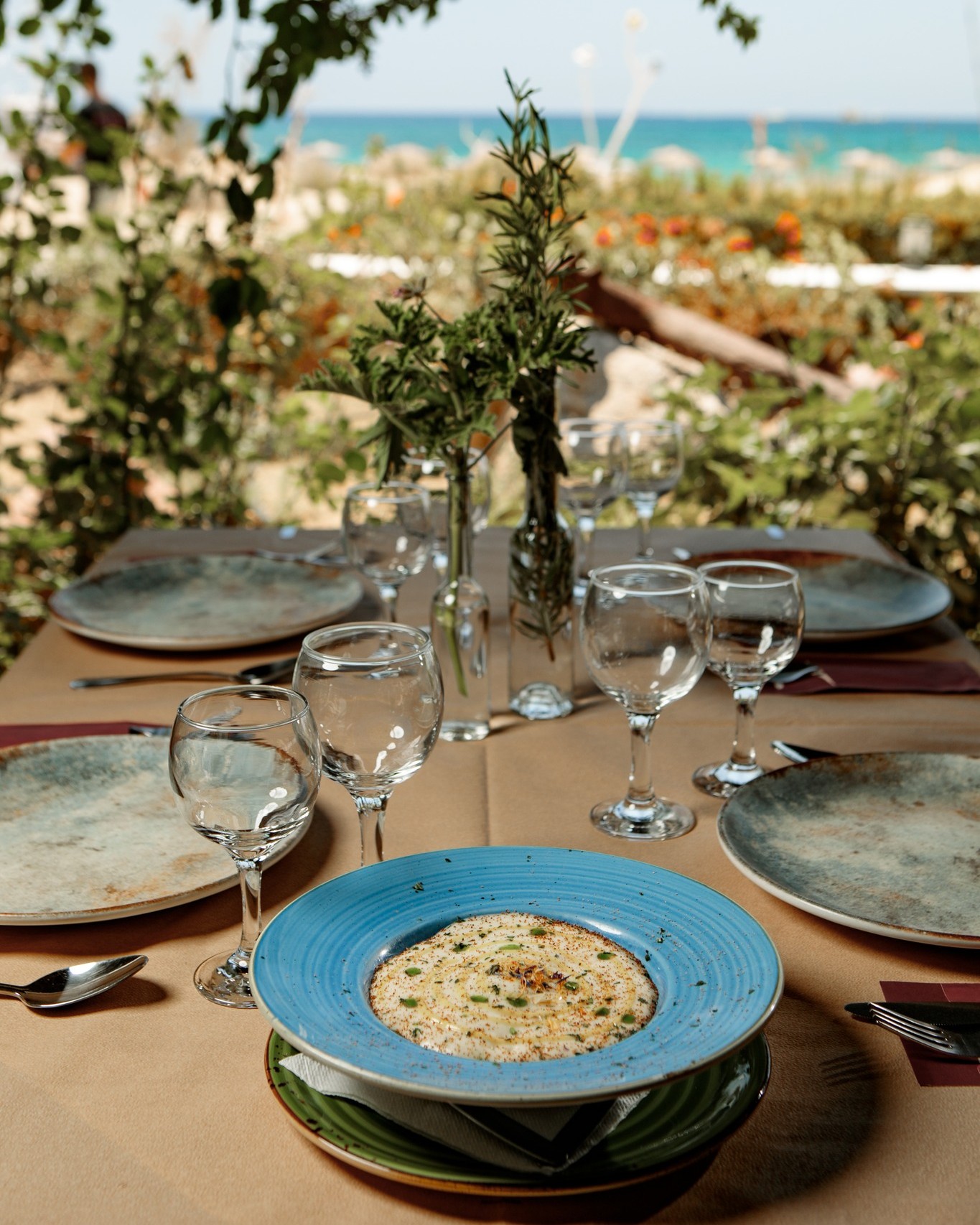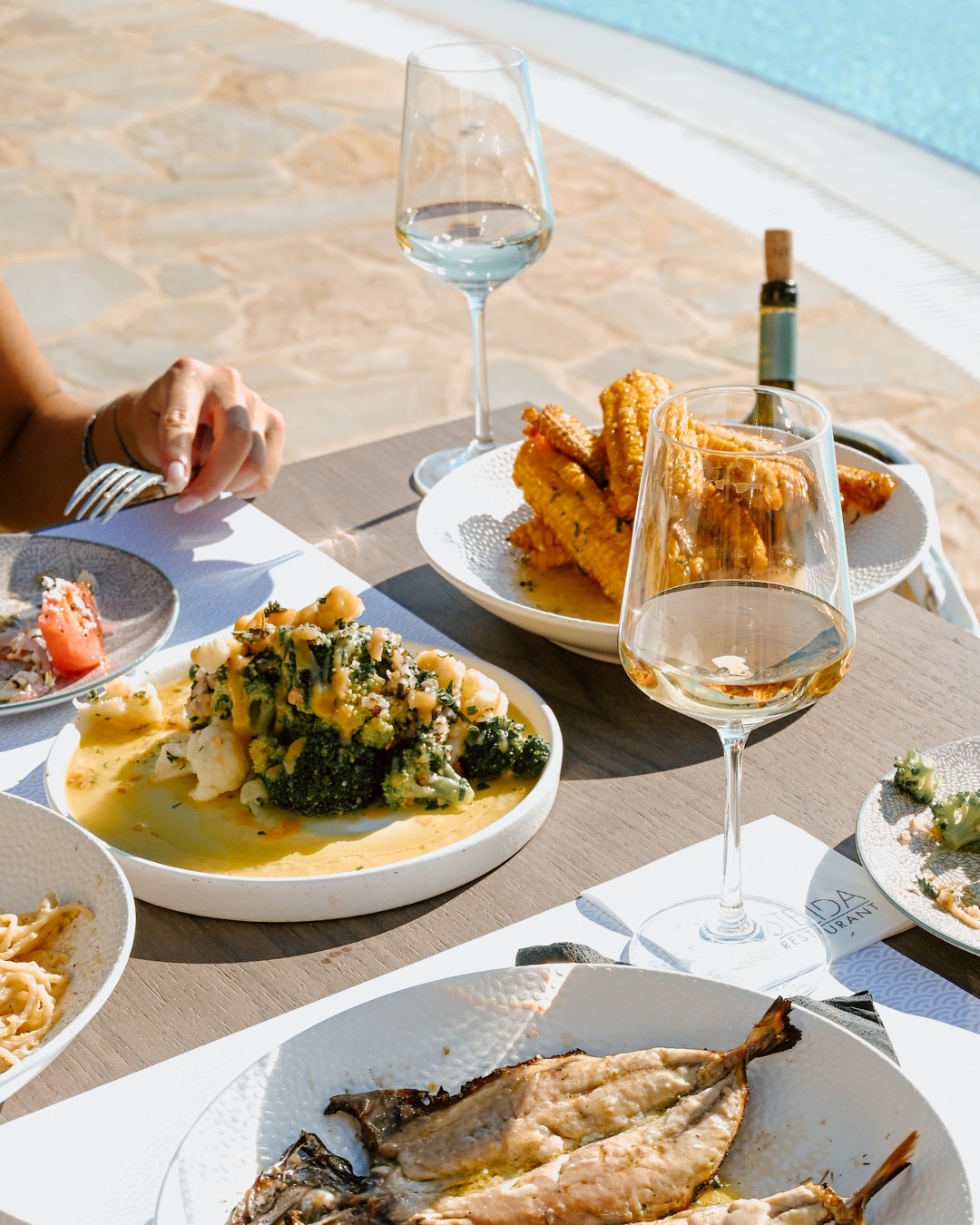 At Laguna Coast Resort in Stelida, Tâma is one of the more atmospheric places to eat on the island, especially after dark. Between the sea and the Portara view, the restaurant moves easily from bright afternoon calm to something softer and more dramatic in the evening. Chef Elpida Morfouli’s cooking is rooted in local produce and a farm-to-table sensibility, but the food avoids the sermonizing tone that sometimes comes with that language. The result is refined, good-looking, and still grounded enough to feel connected to Naxos rather than merely staged on it.
