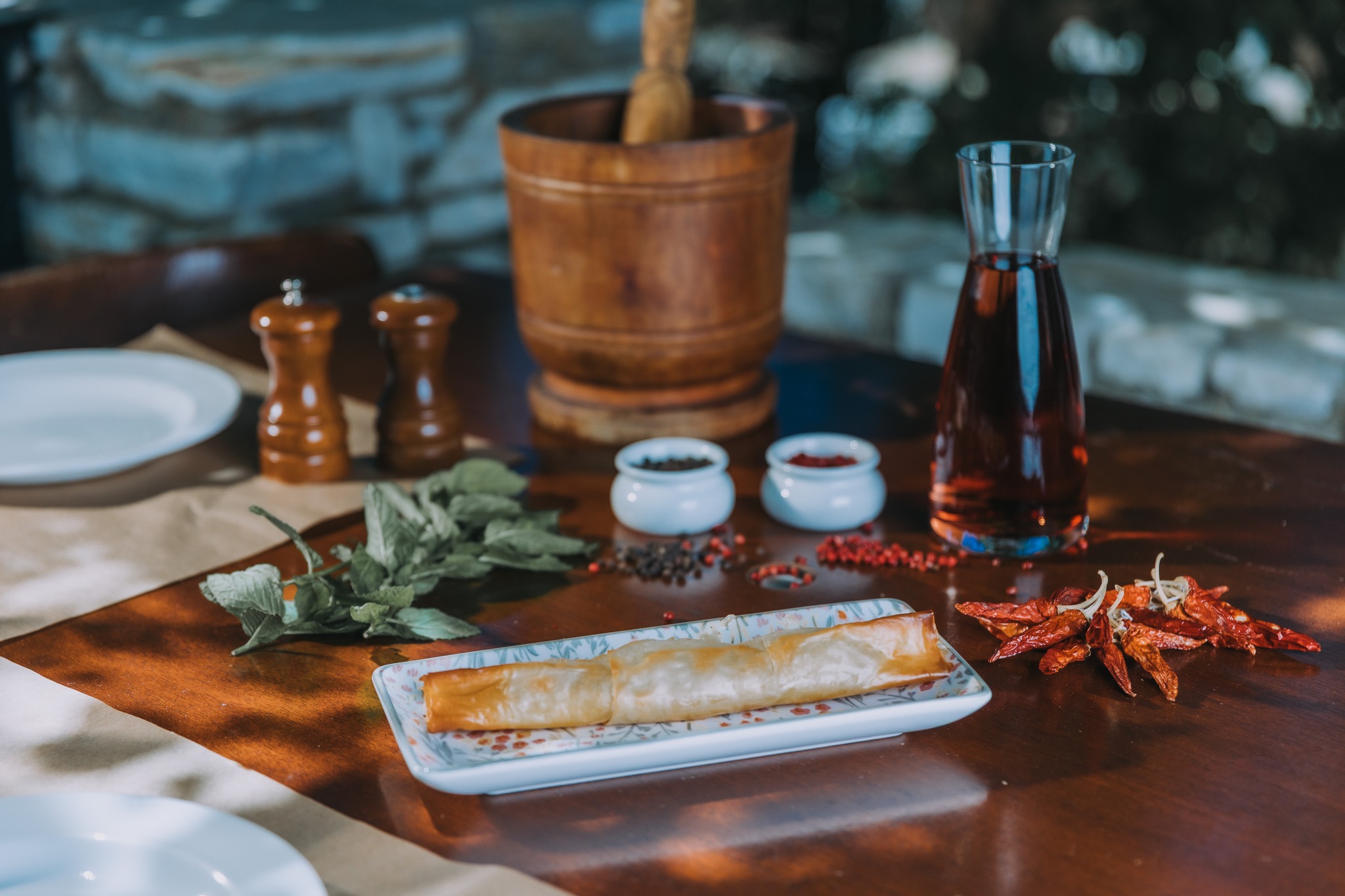 On the central cobbled street of Apeiranthos, Stou Lefteri is another strong argument for the village’s enduring pull as a place to eat. The courtyard, shaded by a walnut tree, sets the tone, while the menu leans into hearty meat dishes and local specialties: stuffed beef patty with Naxian gruyere, stuffed zucchini or zucchini flowers, village potatoes, and charcoal-grilled lamb. It is the kind of place people return to for substance rather than novelty, though dessert – especially the handmade galaktoboureko – gives the meal a fittingly generous finish.