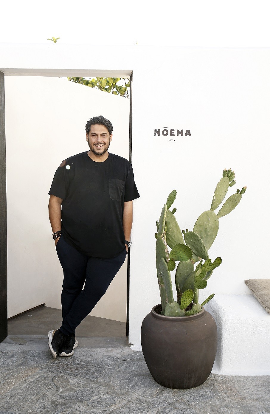 While waiting for the dessert, a Greek variation of tiramisu, with carob and a dash of alcohol, I’m thinking that Nōema could easily be a big success outside the borders. The experience of Cycladic gastronomy, with exclusively seasonal and regional raw materials· this big banquet with guests who do not settle for mere sensationalism· this idea born in Greece· this return to the roots of Cycladic cuisine and traditional ways of cooking, in clay pots and open fire· these explosions of flavours and aromas· the return to basic values through a dining experience is a concept that had been brewing for almost two years in the mind of Athenagoras Kostakos.