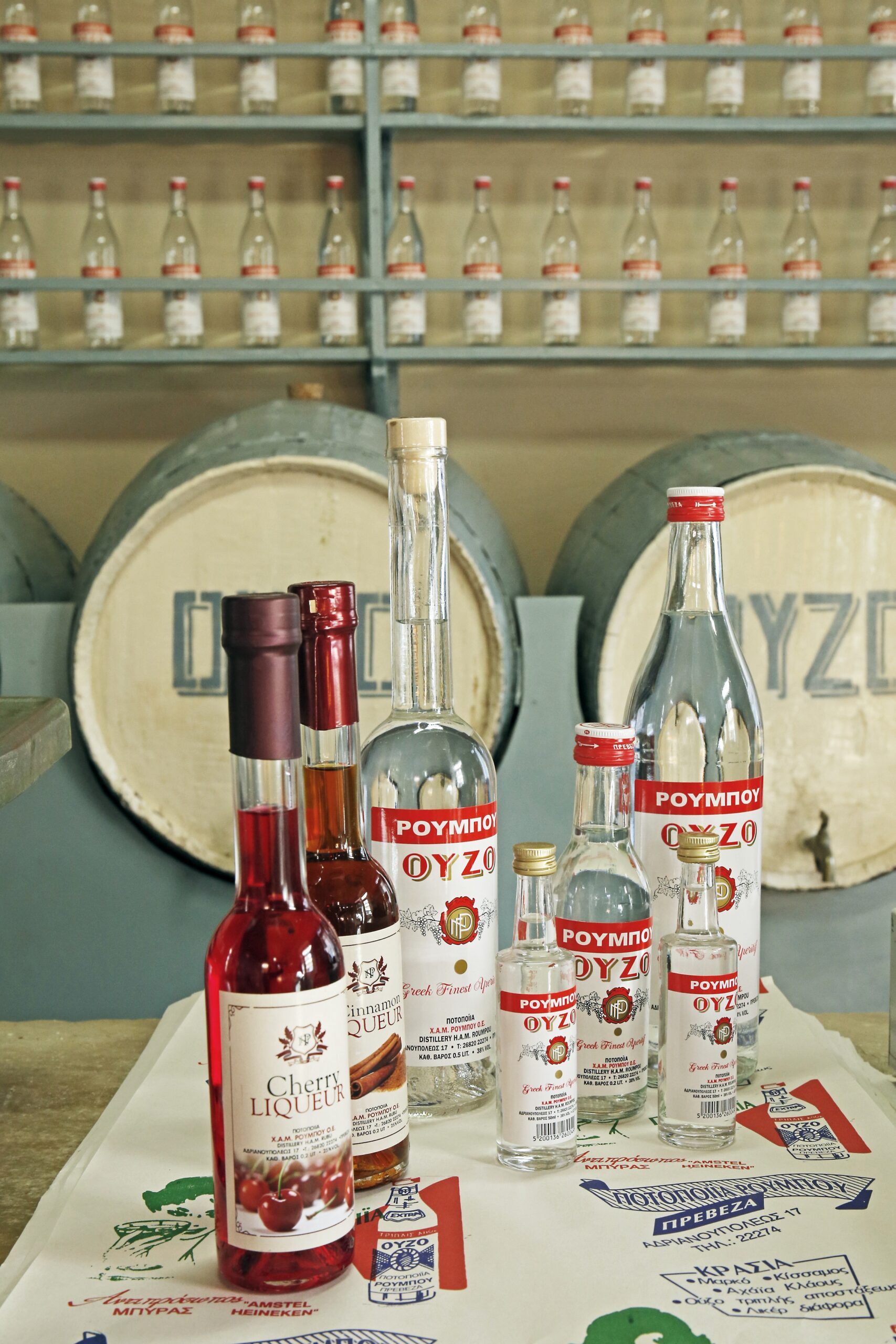 The distillery produces the marvellous Ouzo Roubou, cinnamon liqueur, cherry liqueur, as well as a special brandy, Gnisio Roubou 38%.