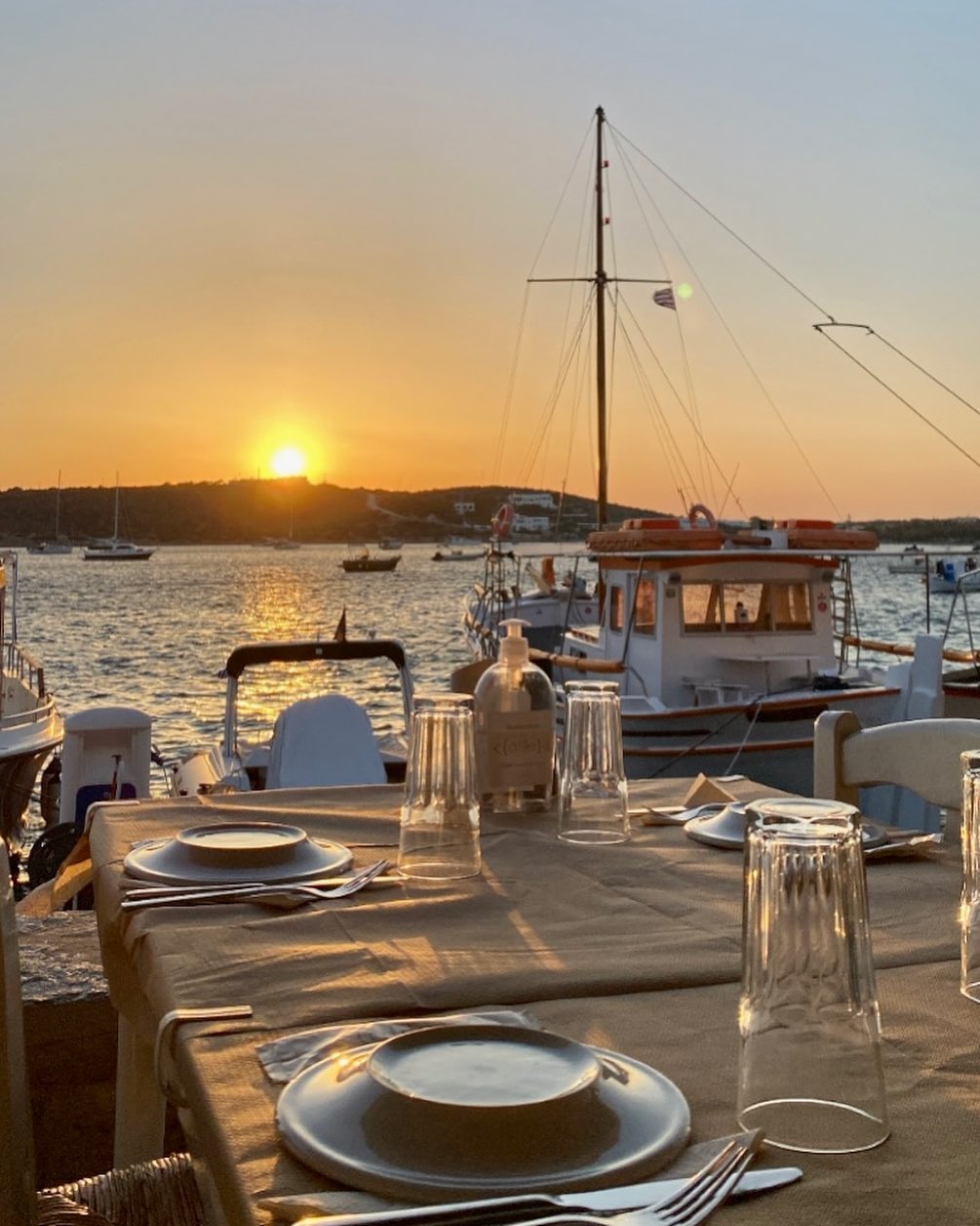 Set along the marina, Aroma is a laid-back taverna with a greenery-framed open-air terrace that catches the island breeze. The menu leans deeply into Greek tradition with dishes like slow-cooked lamb in lemon sauce and grilled sea bream straight from local waters. The zucchini fritters, crisp and golden, pair well with a chilled glass of Assyrtiko, or one of the other Greek wines available. As the sun dips behind the masts of anchored boats, it’s an easy spot to settle in and stay a while.