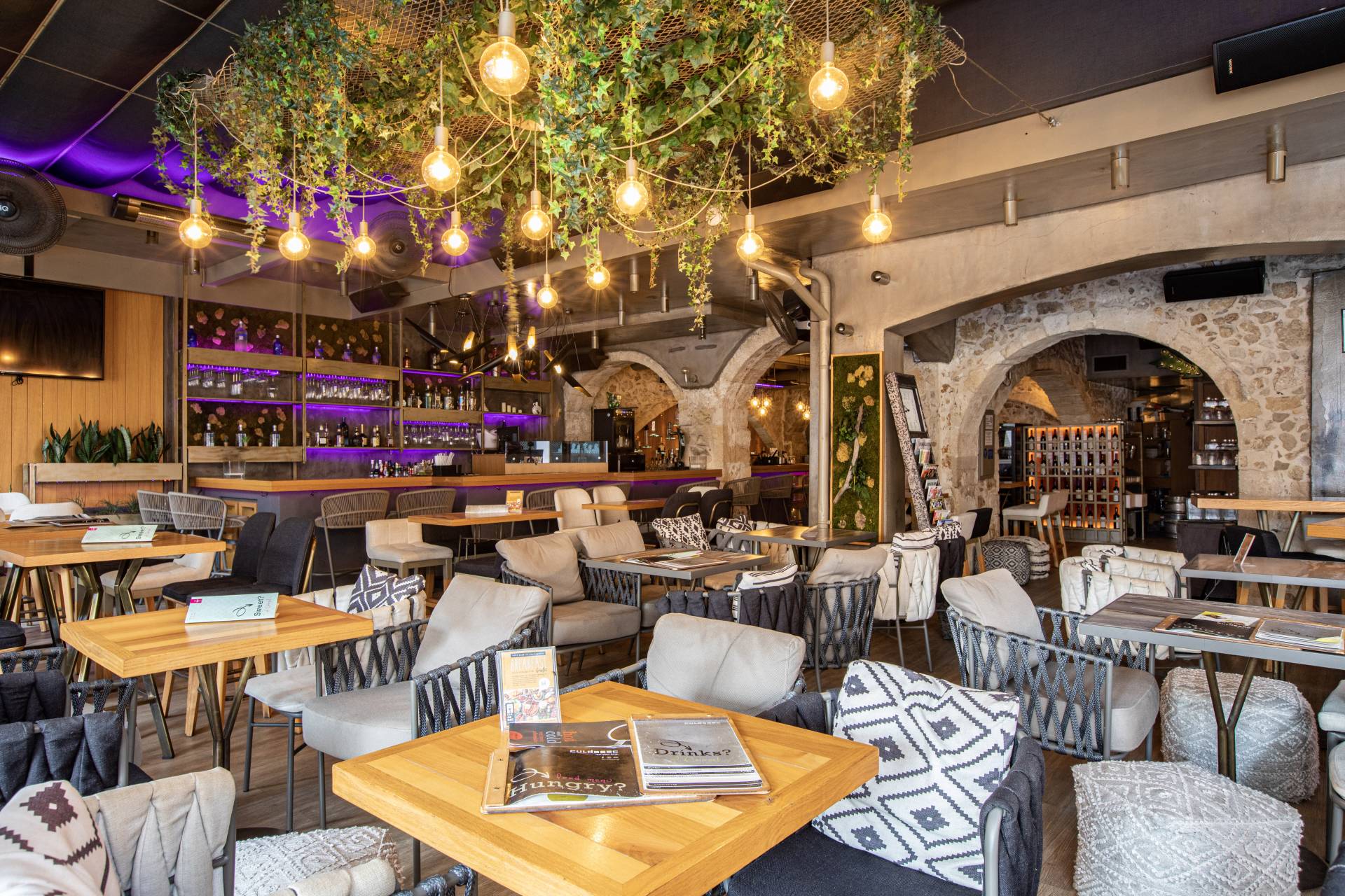 Step into a world of luxury and intrigue with this unique venue, where old stone walls meet blue neon lights in a stunning Venetian building. As the sun sets, the outdoor seating area comes alive with the soft glow of lamps, creating an entirely new ambiance. After 10 pm, the venue transforms into a nightclub, with a live DJ spinning great tunes. Their cocktail menu is extensive and diverse, with something for everyone. But if you’re looking for a recommendation, the Emerald Desire is a must-try, with its blend of Mastiha liquor, melon liquor, fresh basil, and lime. Come for the cocktails, stay for the atmosphere – this place has it all.