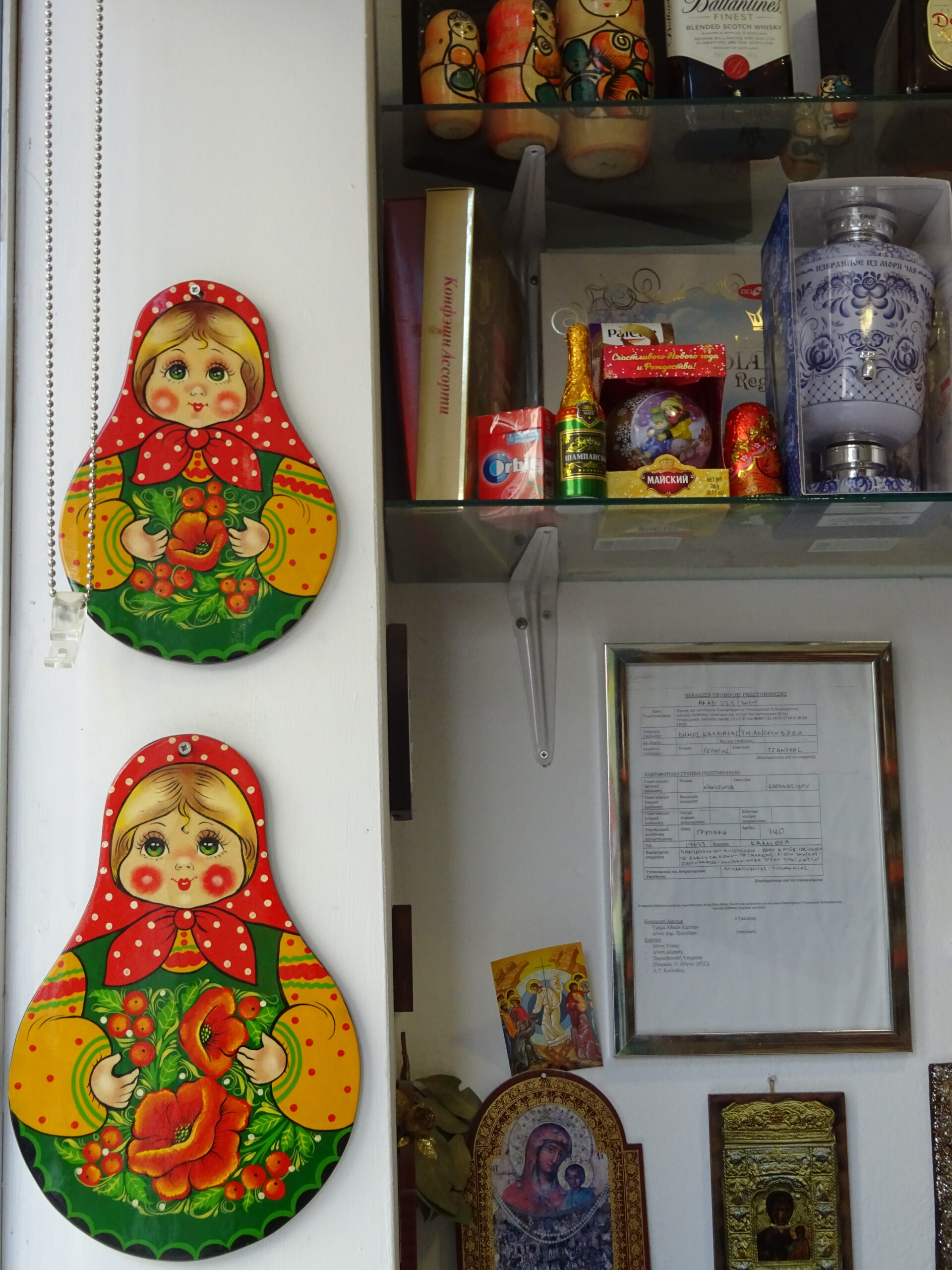 The first thing to make an impression when visiting Russian grocery stores in the Athens suburb Kallithea is the vintage-style packaging of goods, bearing letters in the Cyrillic alphabet. Colourful babushka dolls, distinctive scents, dominated by garlic, piles of charcuterie and lots of vodkas also become apparent to shoppers exploring these stores.
