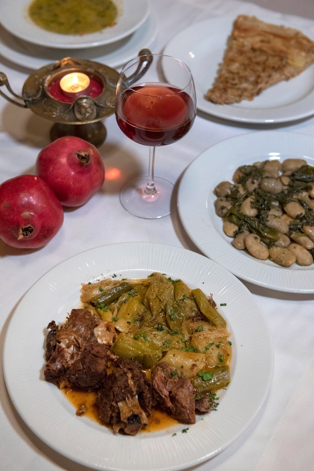 Delicious stews, such as green beans, butter beans with greens, stuffed vegetables, okra, but also oven-roasted lamb, braised beef or goat, wild boar with leek and handmade pies with airy phyllo pastry make up the gastronomic universe of Sotiria.