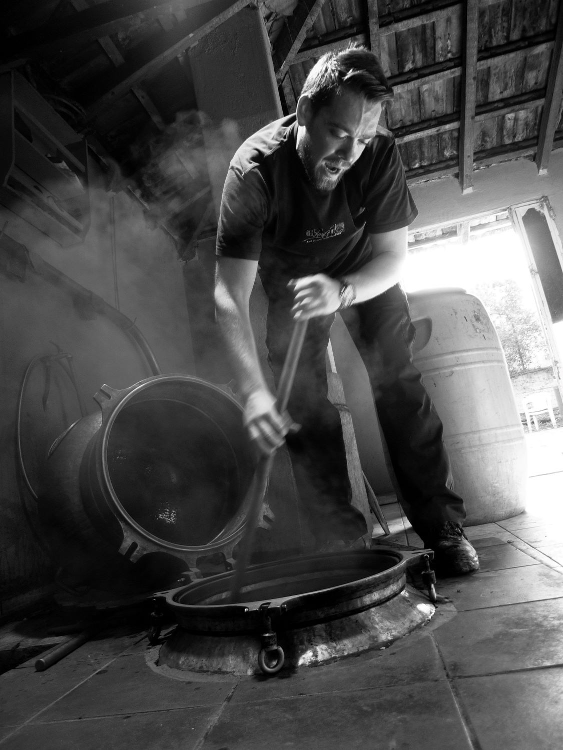 The alchemy of distilling this wild, stray fruit is the same as the distillation of grape tsipouro. Only that the arbutus berries have the peculiarity of needing stirring in the open cauldron until they start to boil, because, being heavy, they sit at the bottom and “scorch,” as Vasilis says, and don’t give you a good distillate. When they start boiling well, he closes the cauldron, the vapors condense passing through cold water, and the tsipouro begins to drip enticingly. In the past, during the second distillation, they always added a lot of sweet anise. Now, they flavor the tsipouro moderately or don’t add any sweet anise at all.”