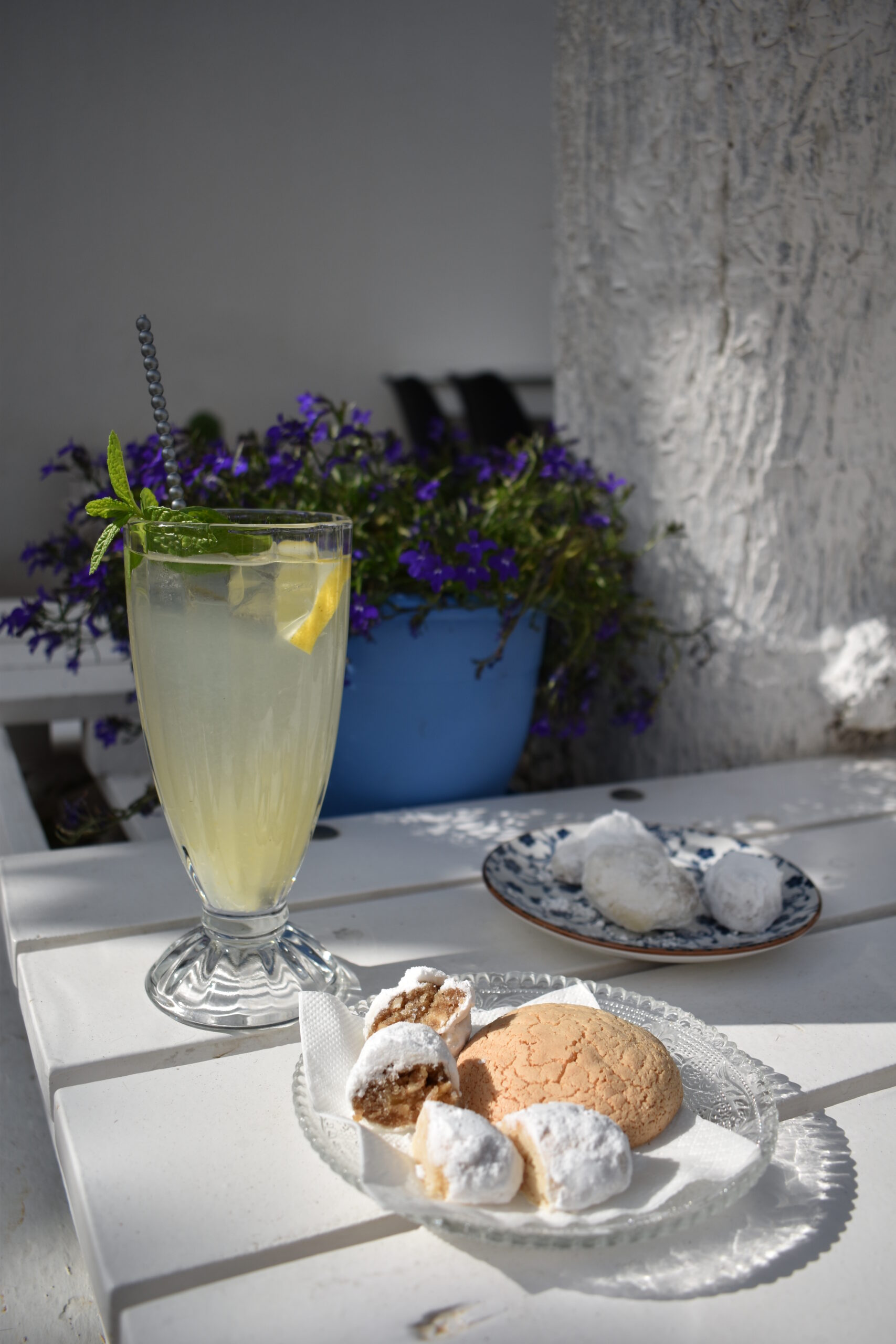 A little further up, on the main pedestrian street of Chora, the Galanos Patisserie owner takes rightful pride in the soumada he prepares in his workshop. Those in the know place their orders in good time, but never miss a stop for a chat and a fresh, traditional pastry. You will sit among them, either indoors, admiring the old photographs on the walls of Mr. Galanos’ grandfather in his workshop, or outside at the corner tables, savouring the aromatic soumada of course with pastitsakia for a more intense almond aftertaste.