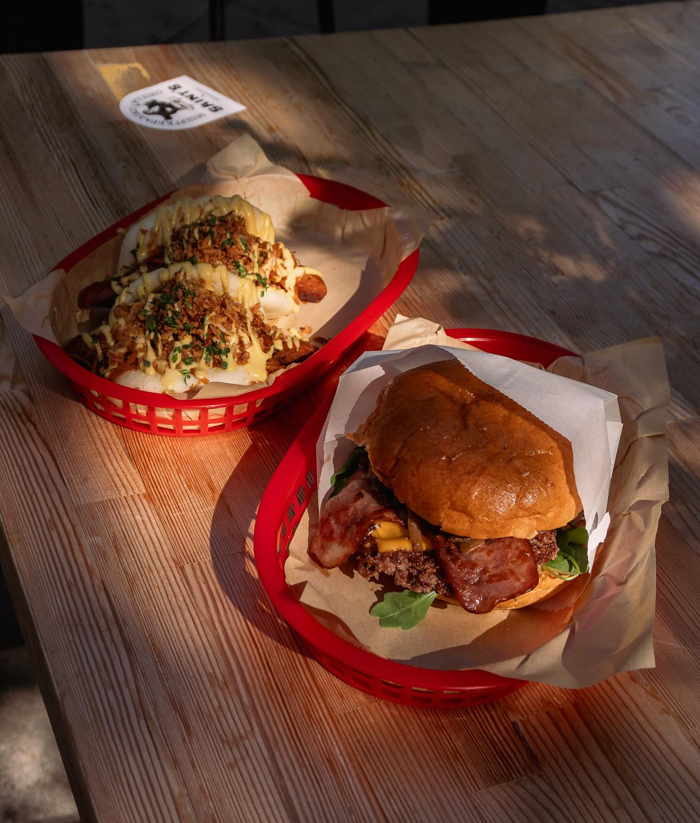 Bright, playful and centered on smash burgers, Saint’s by Mpoumpou has drawn attention with its stripped-down menu and bold style. The star is the beef smash burger, thin patties with crisp edges, served with minimal toppings that highlight the seared meat. A chicken option rounds out the offering, with golden fries and tangy house sauces. The interior bursts with color and pop culture references, creating a lighthearted and vibrant setting. It’s a small space with a lot of personality, and a firm nod to the fast-casual spirit done right.