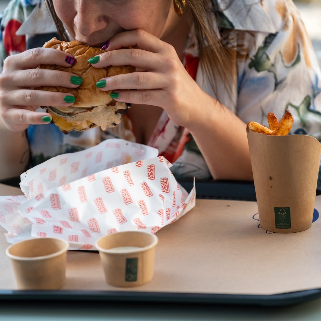 A futuristic brand identity on the Athens burger map, sleek in both design and execution. The menu is streamlined, centered on cheeseburgers that focus on clean lines of flavor—juicy patties, crisp lettuce, and signature sauce in perfectly proportioned buns. Presentation is minimal yet confident, designed to highlight quality ingredients rather than excess. The pared-down aesthetic of the space matches its food philosophy, aiming for impact through simplicity. With an eye toward expansion, it’s a concept that signals ambition from its first bite.