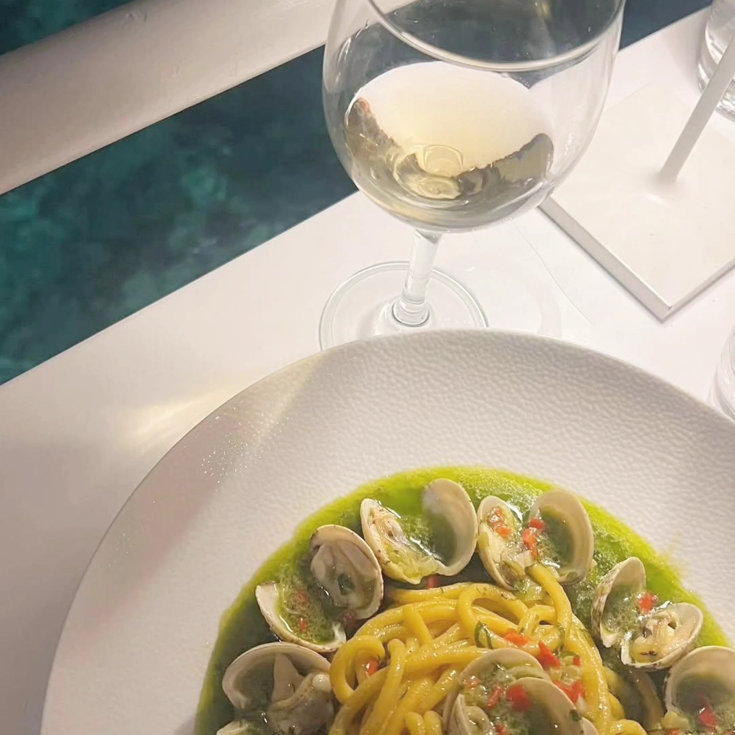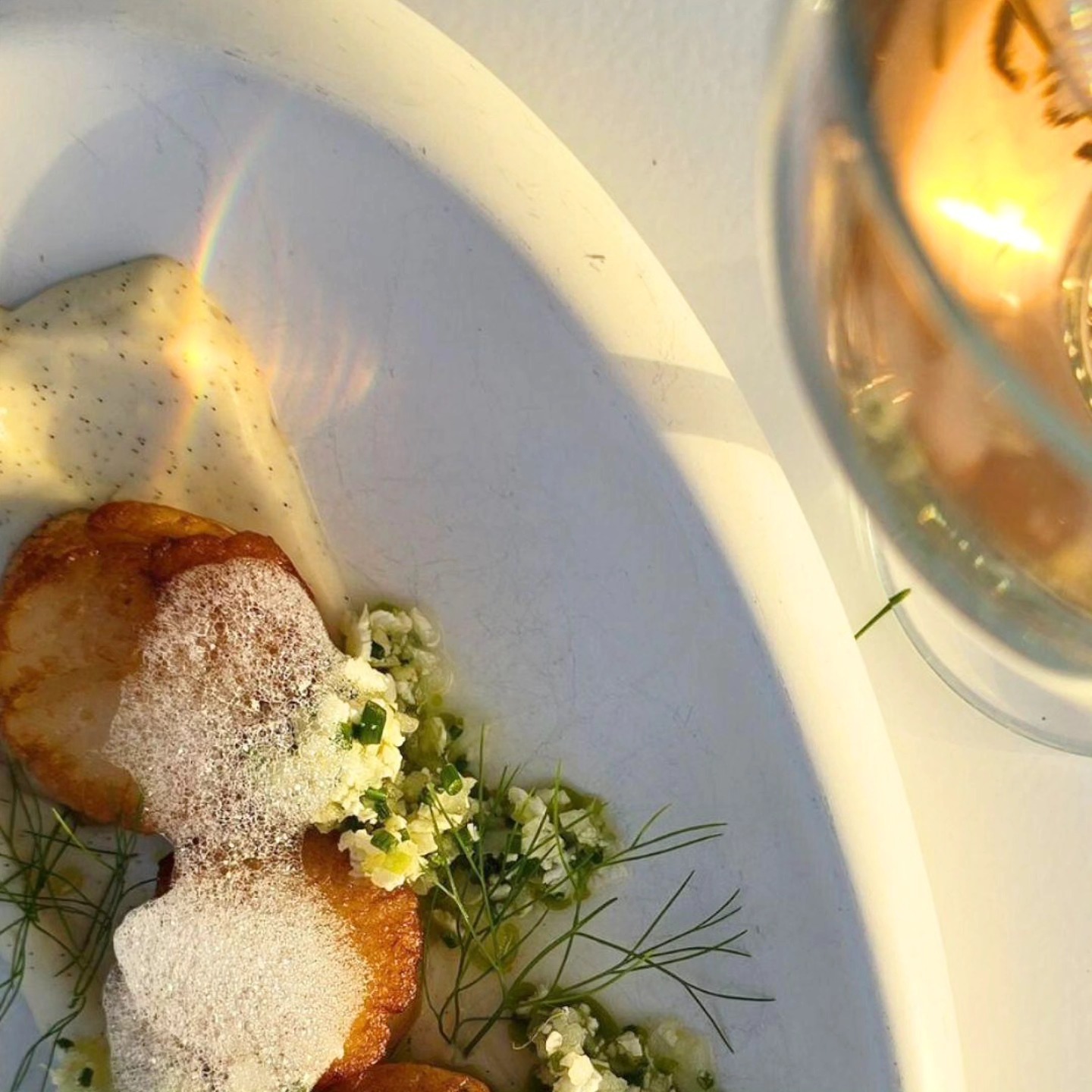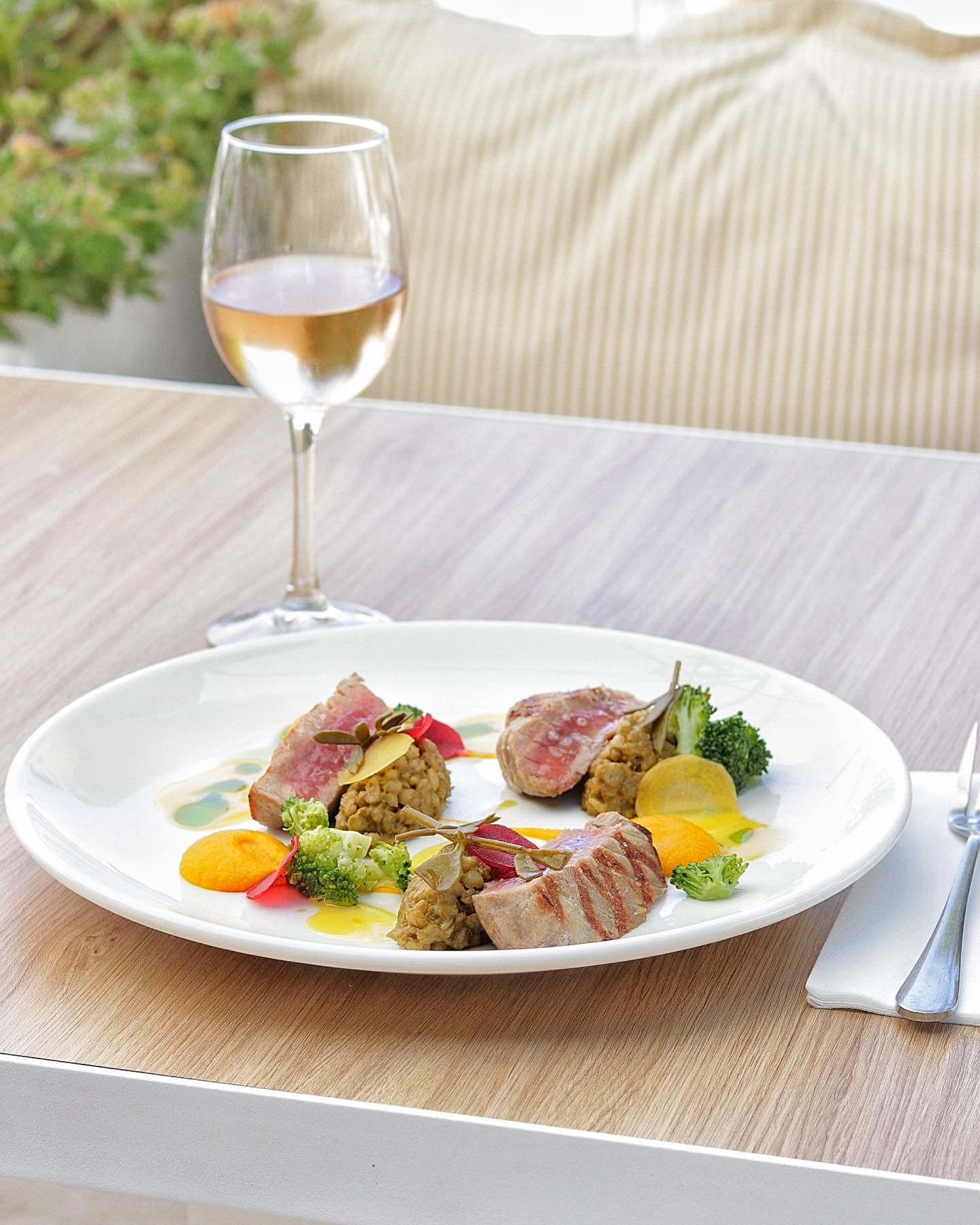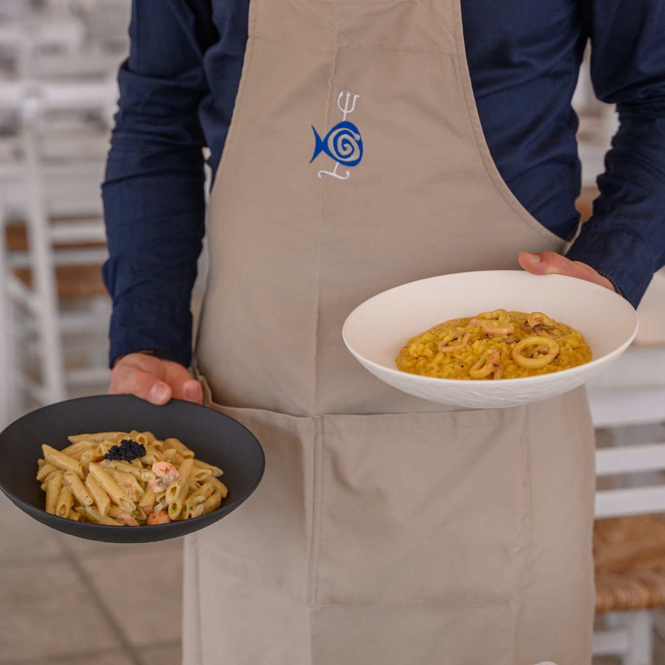 Positioned on the rocks at the harbor’s entrance, this former industrial site functions today as a waterfront restaurant with continuous sea exposure. Lunch and dinner menus reflect modern Mediterranean cooking with Greek sourcing: raw fish preparations, structured salads, seafood pasta, grilled fillets, and composed meat dishes. The deconstructed Greek salad remains a reference point. In summer, the dining service transitions into late-night bar activity. Reservations are advisable in high season.