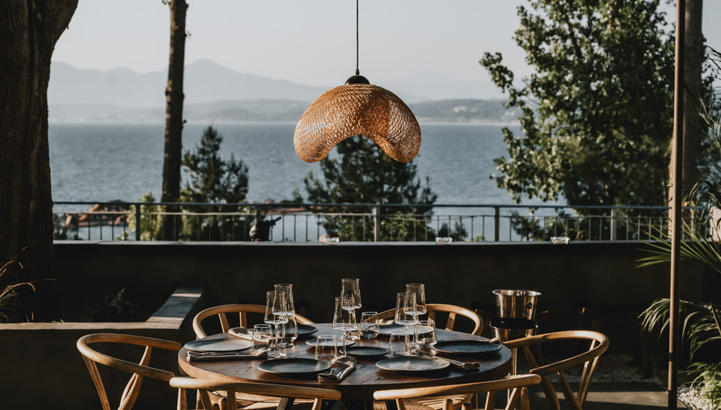 Elegant, airy, and with swoon-worthy views over the Mitikas coastline, this fine dining restaurant honors traditional ingredients with a modern creative twist. Spaciously placed tables (the restaurant never serves more than 22 individuals in one sitting) ensure a sense of luxury and calm. This experience is enhanced by the beautifully prepared and unpretentious yet indulgent dishes, like pasta with regional bottarga, fresh, seasonal Greek Salad with feta mousse & fried capers, and Chicken Metsovone with handmade sweet potato crisps and herb powder. The restaurant is open from June to October.
