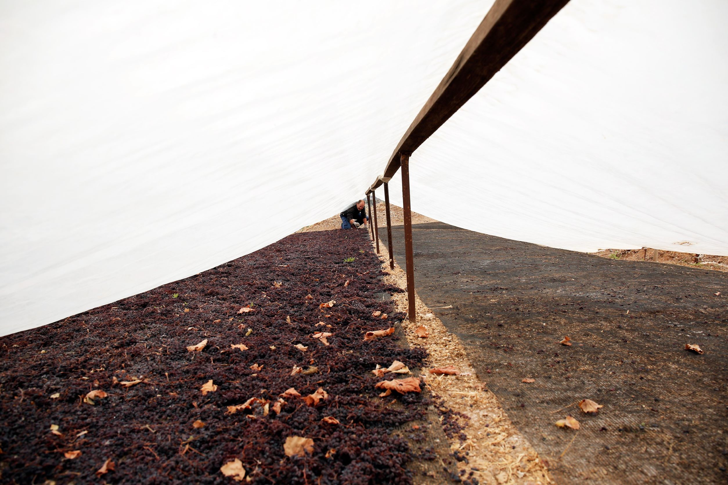 The grapes are left to dry in the sun for about eight days, and another three after they’ve been flipped over. The weather ultimately determines the duration of this process. The “laganisma”, that is the removal of the stems from the fruit, is next, followed by the final stage, during which larger and smaller grapes are sorted and any impurities removed. It sounds simple, right?