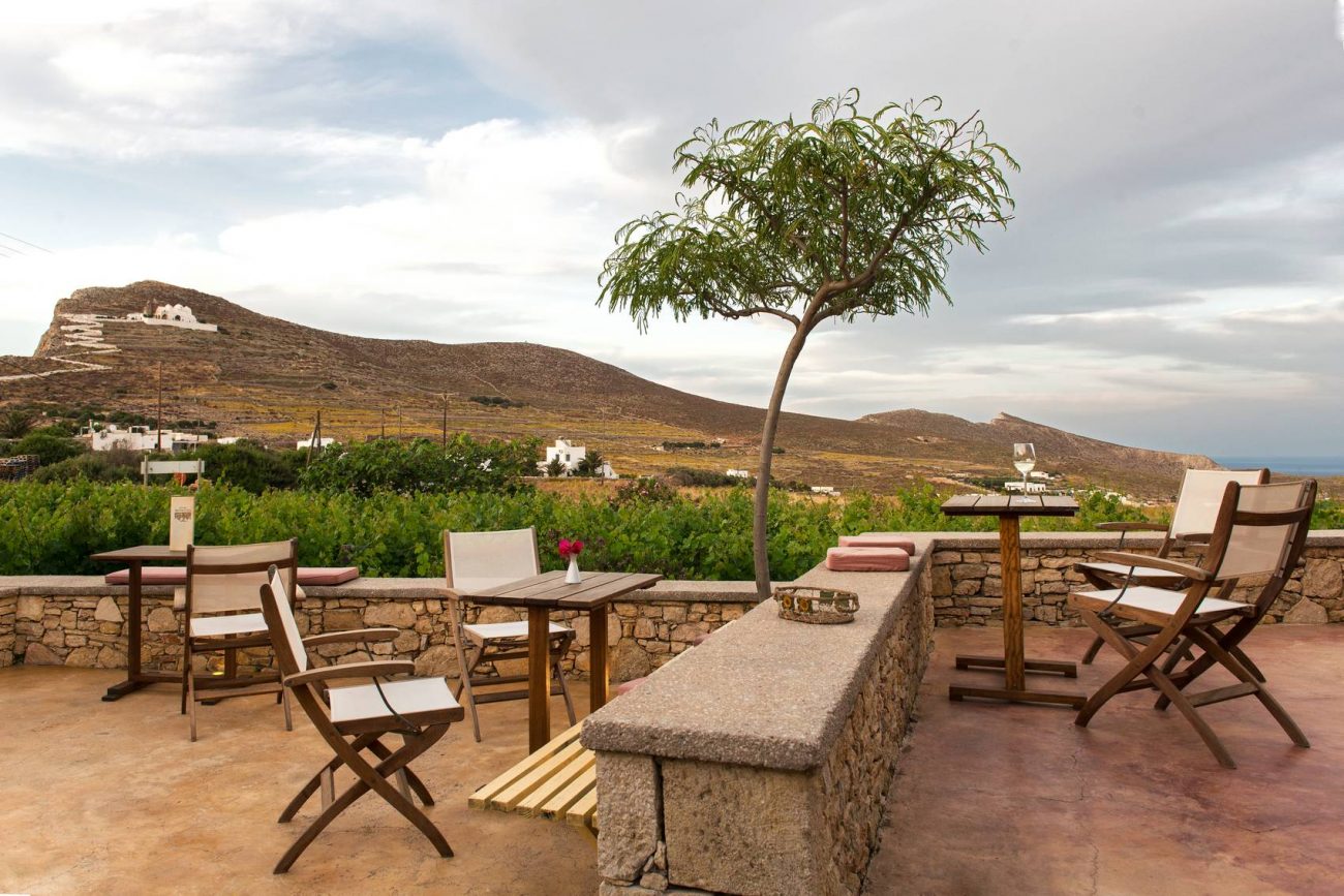 Located just a short stroll from Chora, this charming wine bar offers a delightful selection of reds and whites, accompanied by an assortment of cocktails, including refreshing ice-shaken margaritas. To further enhance your experience, a modest meze of cheese and meat awaits. The true highlight, however, lies in the wine bar’s picturesque setting. From its open terrace, admire the sweeping vineyard vistas and the island’s prominent church. As you unwind with a touch of ’80s and ’90s ambiance, savor the authentic field-to-table experience this wine bar provides.