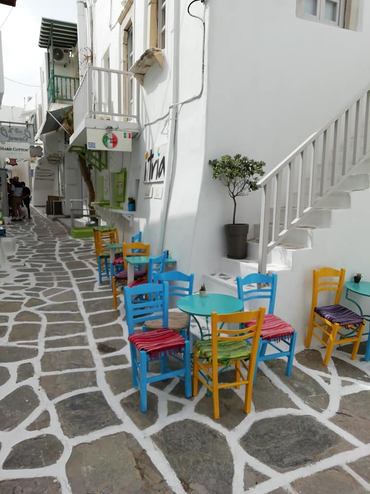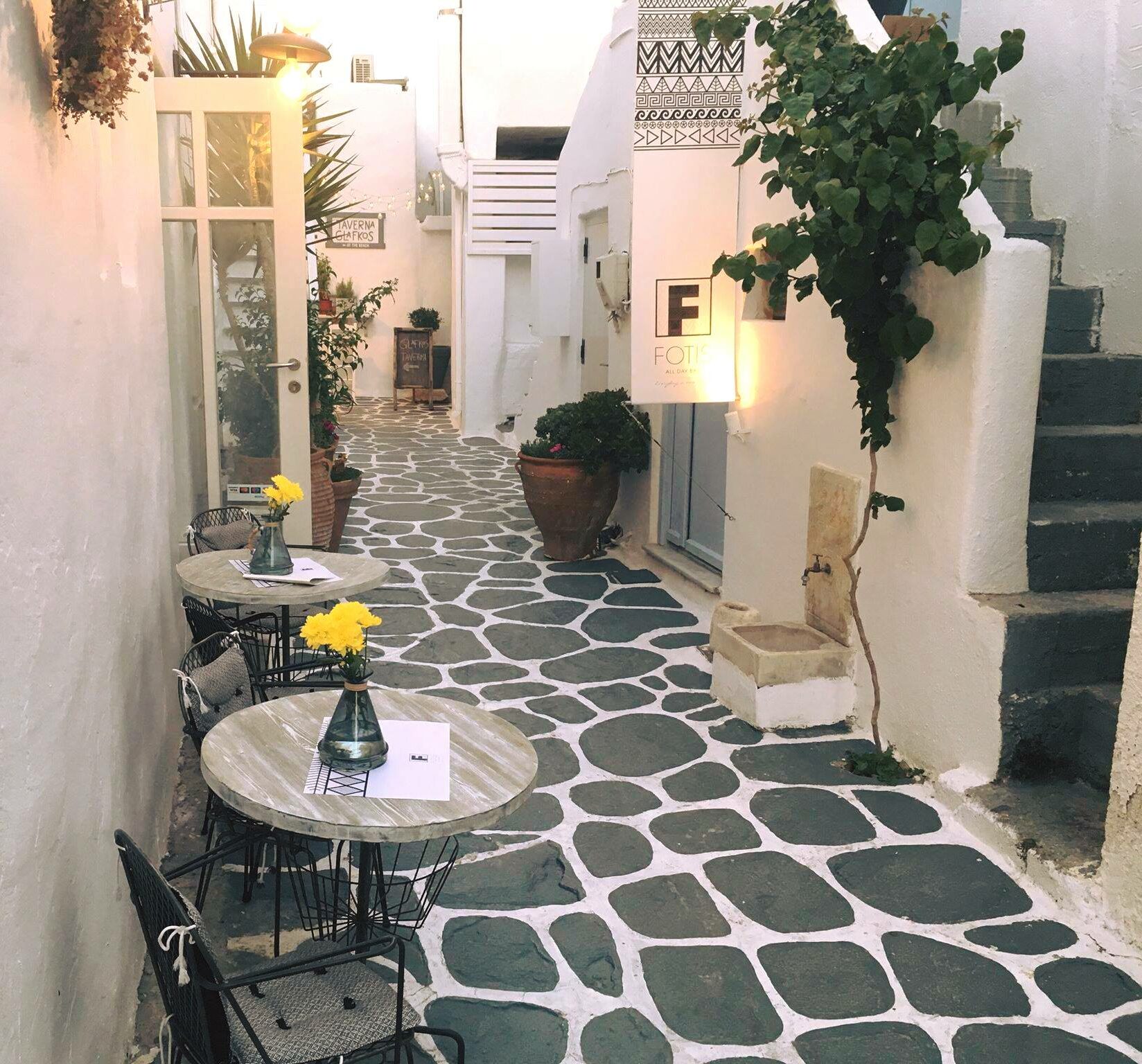 Situated down a narrow, picturesque alleyway that appears to lead nowhere, you’ll discover Fotis Bar. A popular haunt of Naousa, it boasts an even bigger reputation thanks to its famous proprietress. Fotis Bar carries the stamp of actress Sophia Aliberti, who for many years now, has made Paros her permanent abode and her entrepreneurial playground. Its rear tables, with their comfortable little sofas, seem to nudge against the waves, offering moments of romance, isolation, and relaxation – a haven in the midst of hustle.