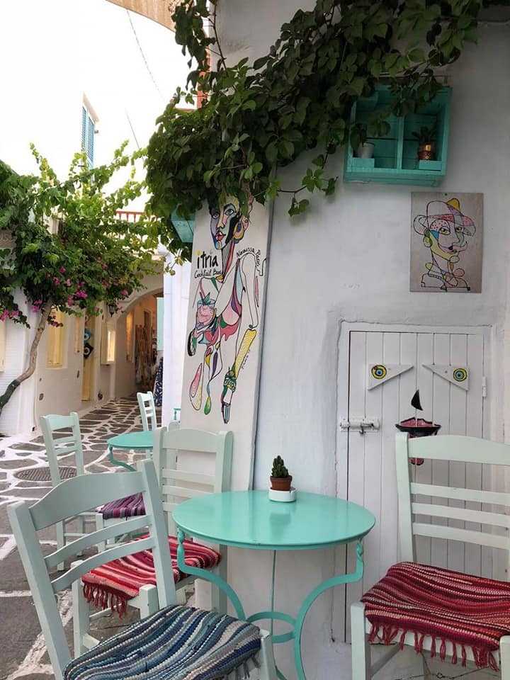 Holding court in the vicinity of Sousouro, the delightful Itria Bar is a scene-stealer with its metallic, circular tables and chairs that look like they’ve been dunked in a painter’s palette – each one a different shade of pastel. It’s a wholeheartedly “cheerful” hangout, overflowing with good drinks and even better company.