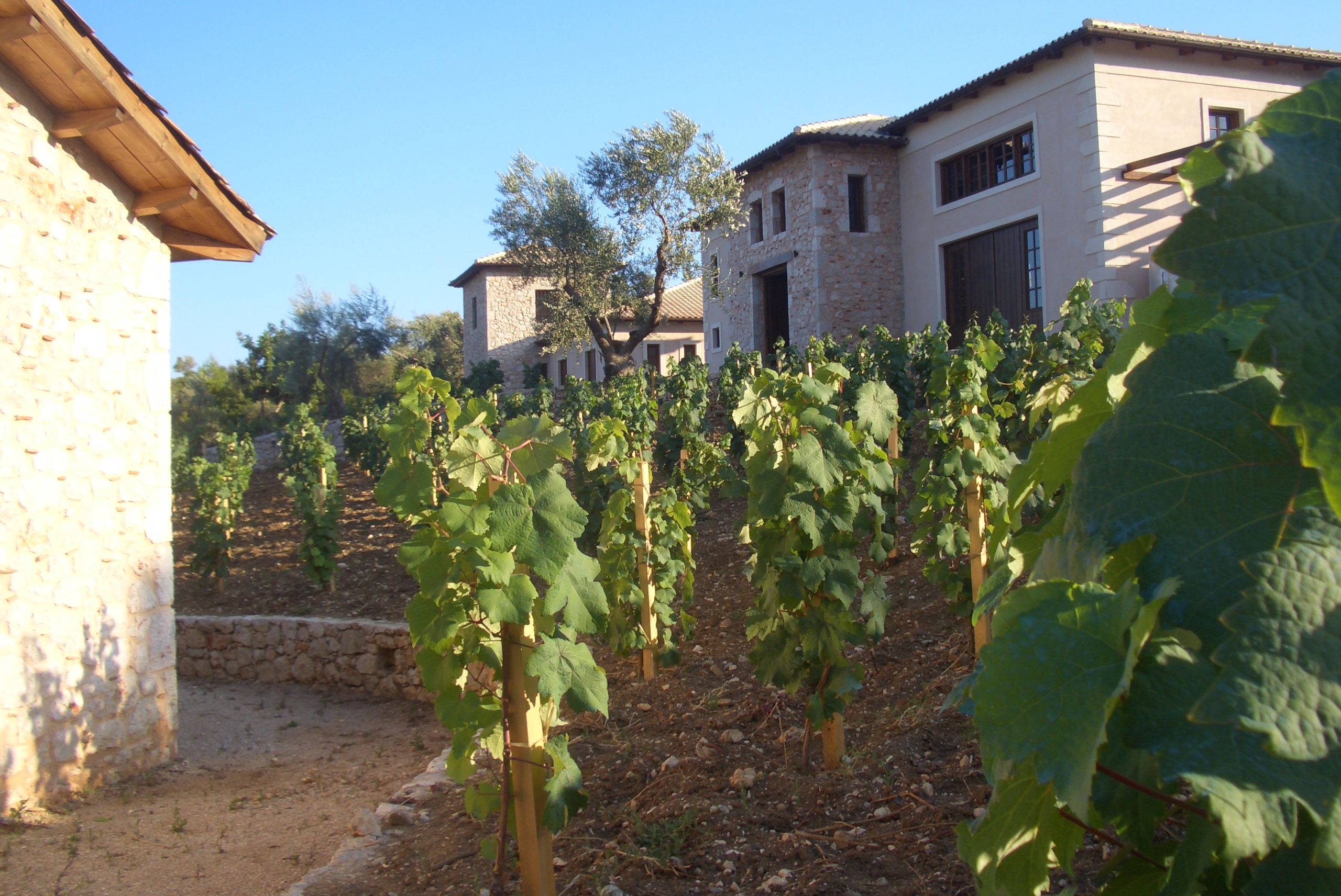 The winery is housed in a beautiful stone building where both traditional methods and modern equipment are used. The family’s vineyards are located in the area of Agios Ioanni Antzousis and in Karya at an altitude of 550 meters. The vineyards, similar to the rest of the mountainous vineyards of Lefkada, were created through terracing, leveling, and reclaiming the surrounding slopes.