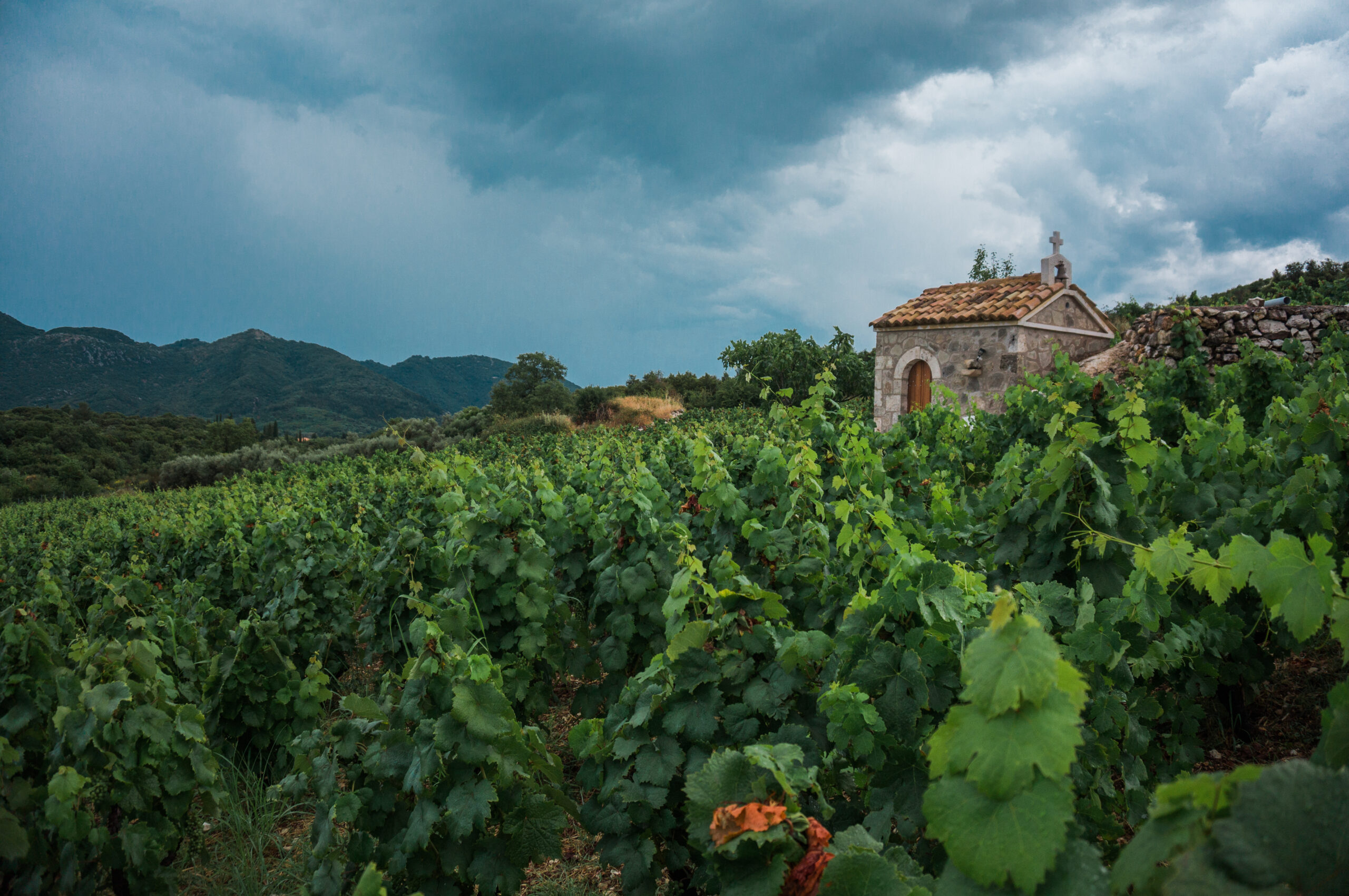 The island’s terrain is mountainous with the majority being steep, including the highest peak, Mount Elati, which stands at 1182 meters. Most vineyards are located in the mountains and the climate, although warm Mediterranean, experiences the cooling influences of their high elevation and those of the nearby Pindus mountain range.