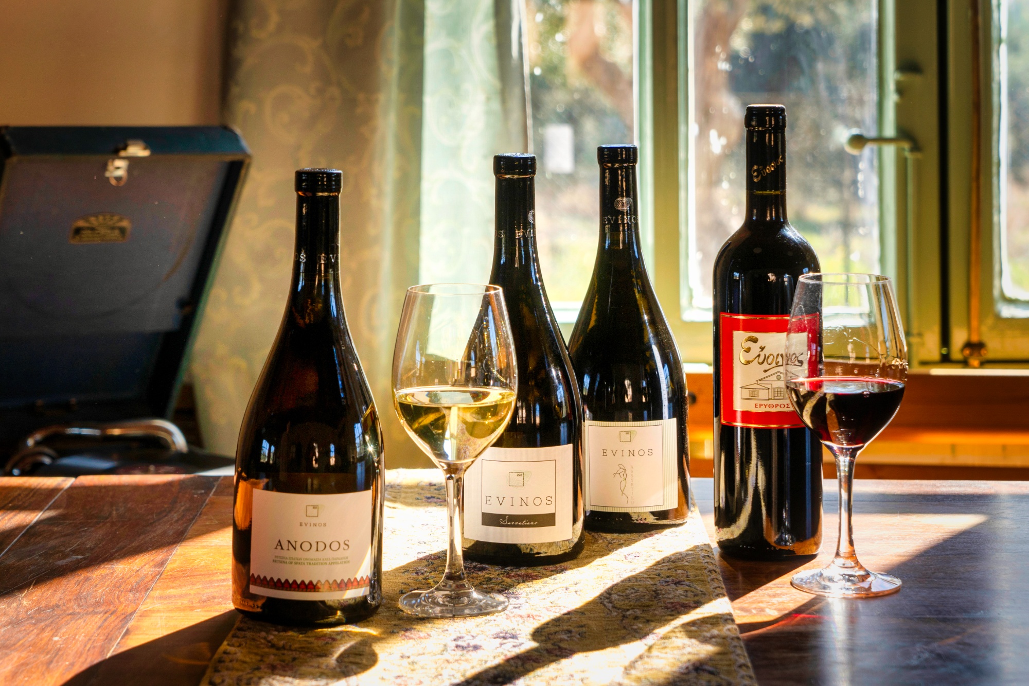 At the Evinos estate in Spata, the family of owners continues the wine-making tradition of Stavros Koulocheris, who since 1888 was selling wine in the markets of Athens and Thessaloniki. It is a small wine making unit with modern equipment. The 7.8 hectares of privately owned vineyards are divided into two