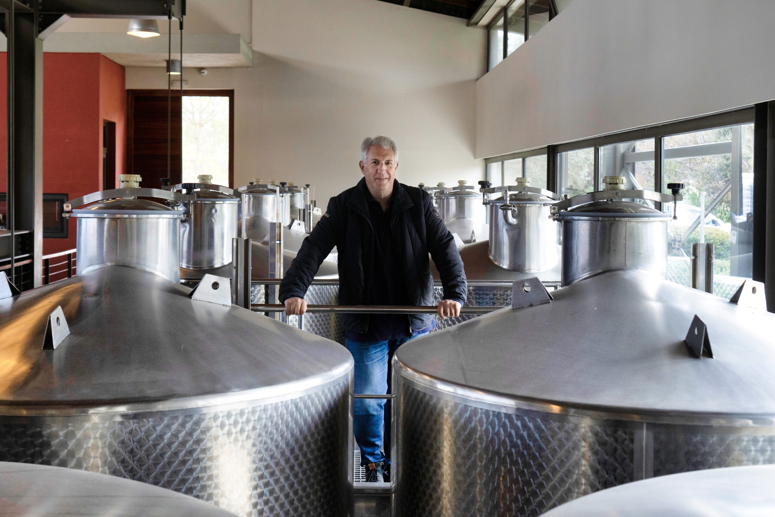The winery has a tasting room in a beautiful stone building capped with a wooden roof.