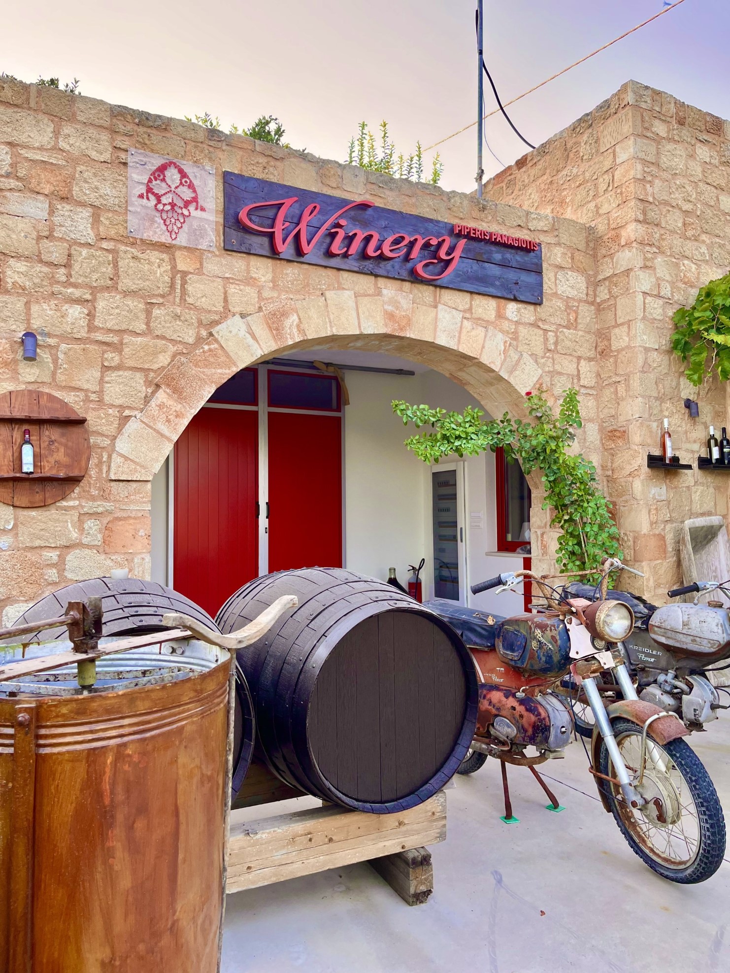 This winery is located in Salakos, at the base of Mount Profitis Elias, in the center of the island. It spans 13 acres, with most cultivation and care done manually, including pruning, defoliation, and harvesting. Since 2015, weeds have been removed only through mechanical means to avoid the use of chemical pesticides. The grapes grown include Amorgiano (also known as Mandilaria) and Muscat Trani, as well as 20% of other Muscat clones such as Muscat of Samos, Muscat of Alexandria, and White Muscat. The grapevines are planted in rows and have a “double cord” (Royat) formation. They are 20 years old and have their original roots.