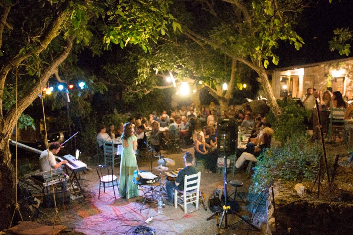 Rustic simplicity is key at Ampelostrates, which feels like a secret gathering spot deep in the village of Koiliomenos, with friends and families gathering in a large courtyard beneath the trees to enjoy live Greek music performances. Flavors burst forth boldly in dishes like skordostoumpi, the garlic-infused eggplant that has delighted generations.