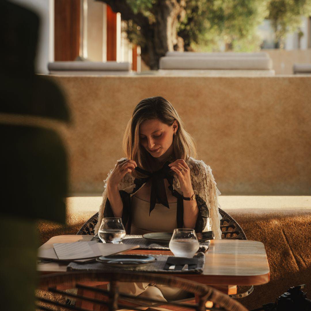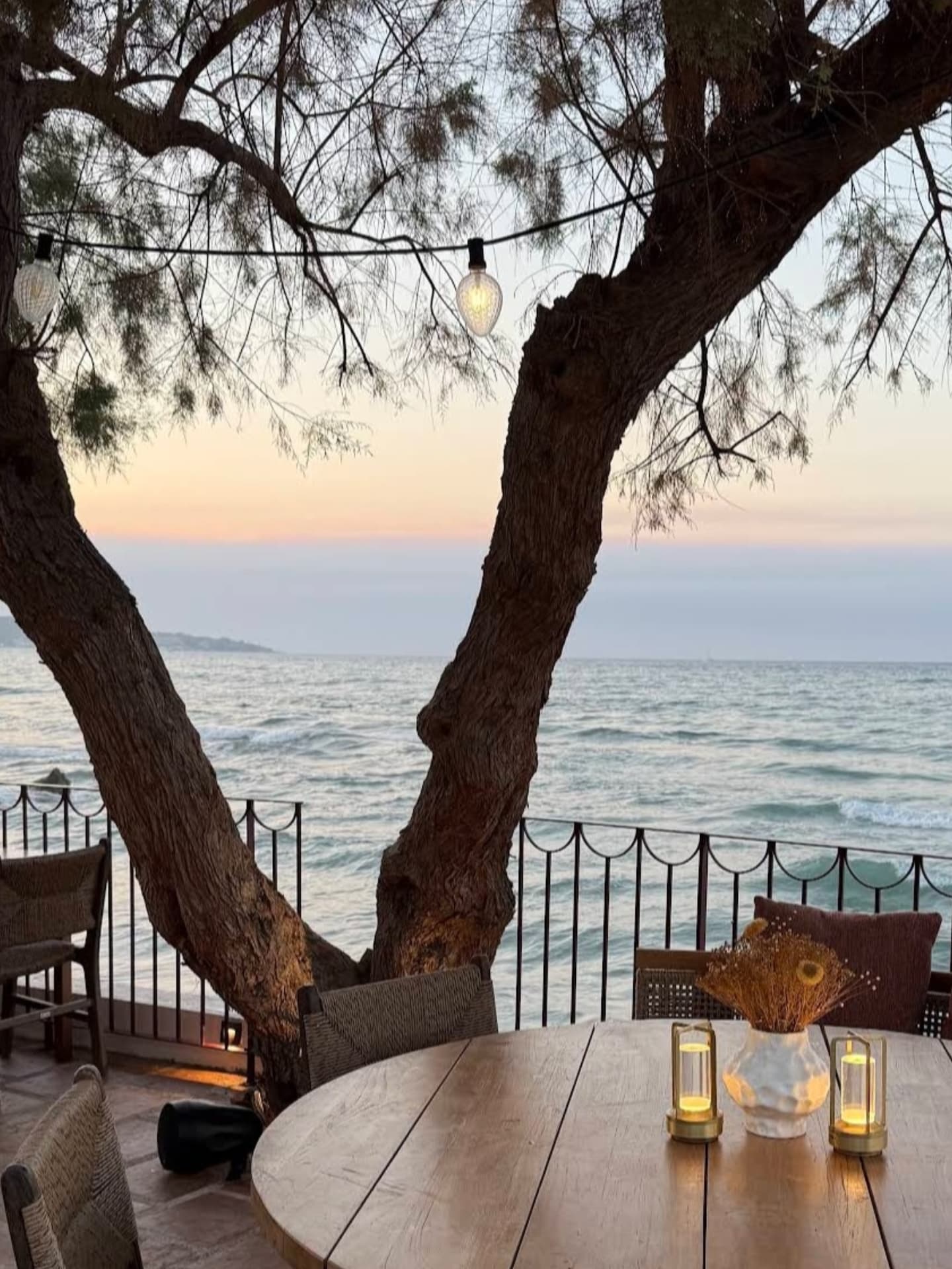 The menu follows a modern Greek direction, served in a luxury resort setting and paced for long evenings. Seafood appears prominently across the menu, prepared with clean flavors and clear structure, while meat dishes arrive as complete mains rather than secondary options. A good place to start is with raw or lightly cured fish finished with citrus and herbs, followed by slow-cooked pork paired with local cheese, a dish that reflects both technique and regional sourcing.