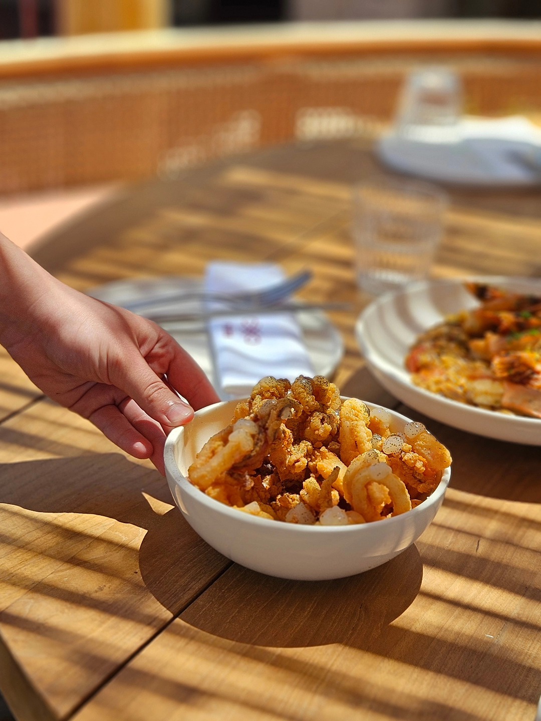 Dining takes place in a courtyard setting and suits full evening meals built around multiple seafood plates rather than quick orders.