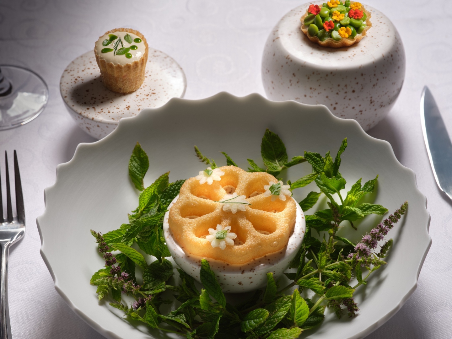 Estate wines accompany the food throughout the meal. Dinner service offers the full menu.