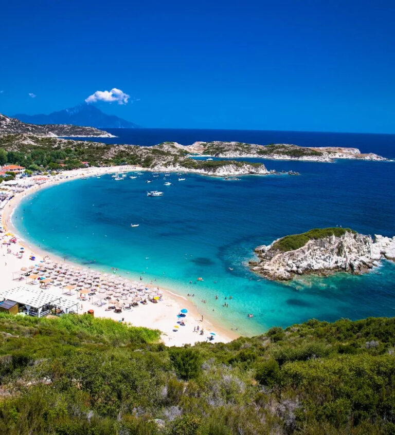 The rhythmic pulse of Halkidiki’s life flows through the capital, Polygyros, and the largest town, Nea Moudania, while the Cholomontas mountains stand vigil over the region like timeless sentinels. With its revered monasteries, the peninsulas of Kassandra, Sithonia, and the enigmatic Mount Athos captivate the traveller with their serene beaches and verdant landscapes.