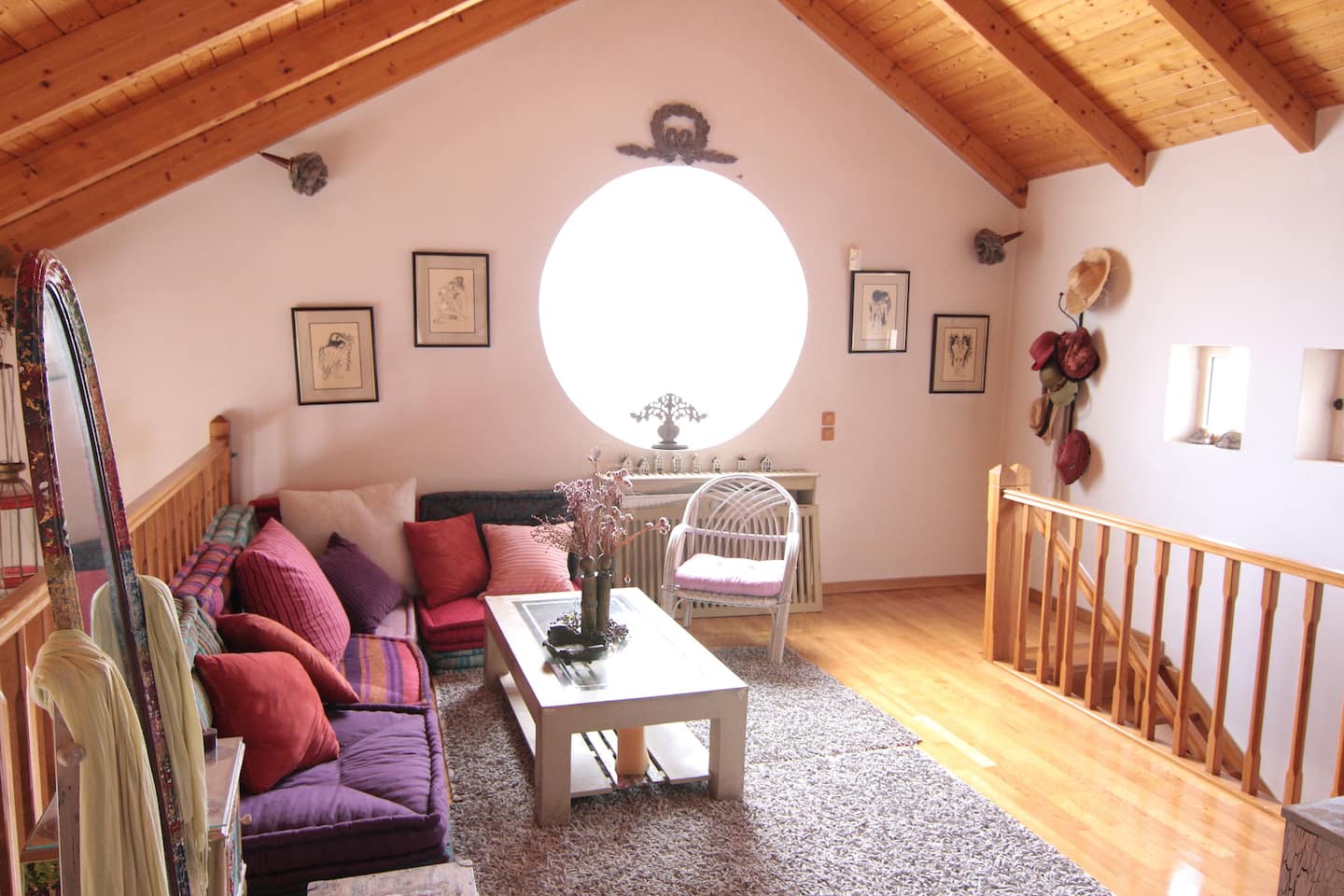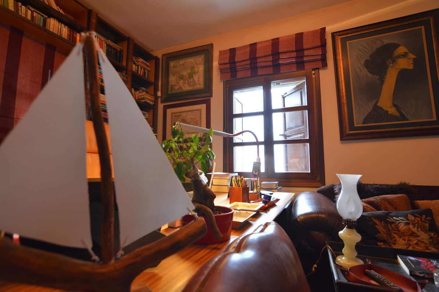 A house with a strong artistic character, full of lovely paintings on the walls and 8,500 books beautifully scattered in every corner, offers luxurious holidays in one of the most popular winter destinations in Greece, Pelion.