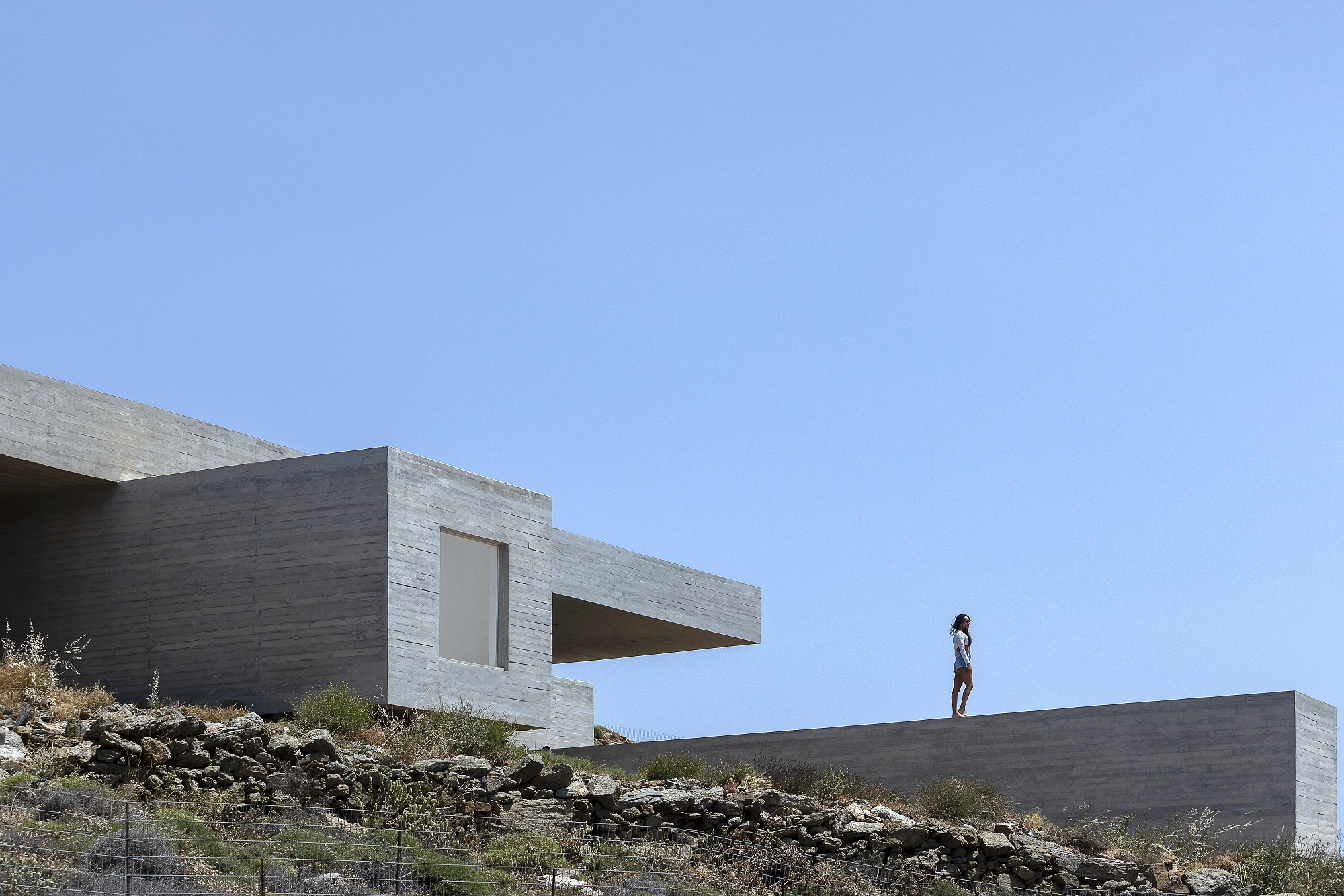 Dividing one building in three separate yposkafa parts aimed at fully incorporating it into its surroundings. The result is an impressive villa that promotes the Cycladic landscape through a modern minimalist aesthetic, achieving its incorporation into the natural landscape.