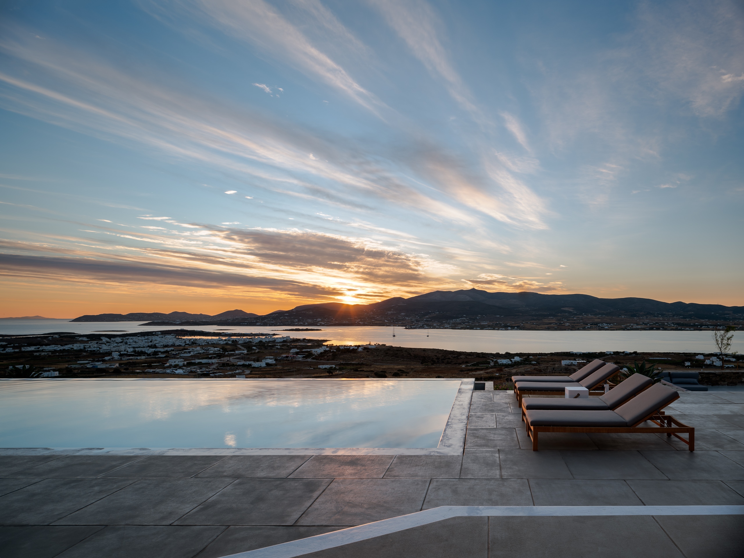 Sunrise is reflected on the Paros canal, showering in light the endless blue of the Aegean, as well as the neighbouring islands of Delos and Mykonos, thus creating the ideal conditions for relaxing while enjoying the view from the infinity pool in a unique balcony on the Aegean.