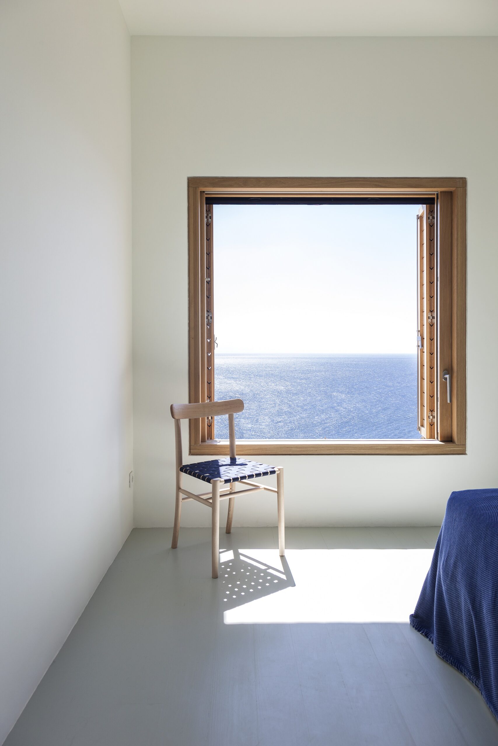 The bare concrete of the exterior of Patio House contrasts with the soft, light interior that references the traditional architecture of Karpathos, combining it with Scandinavian furniture and with a wide range of materials. In addition, the differently shaped, and varying in size, windows have been carefully placed so as to frame the unique view of the sea and of the surrounding landscape.