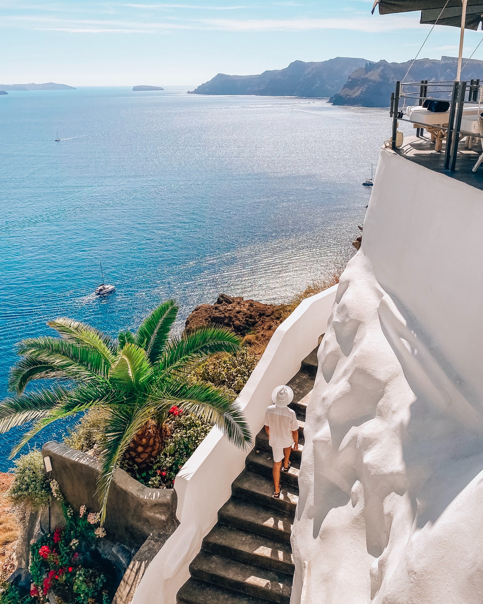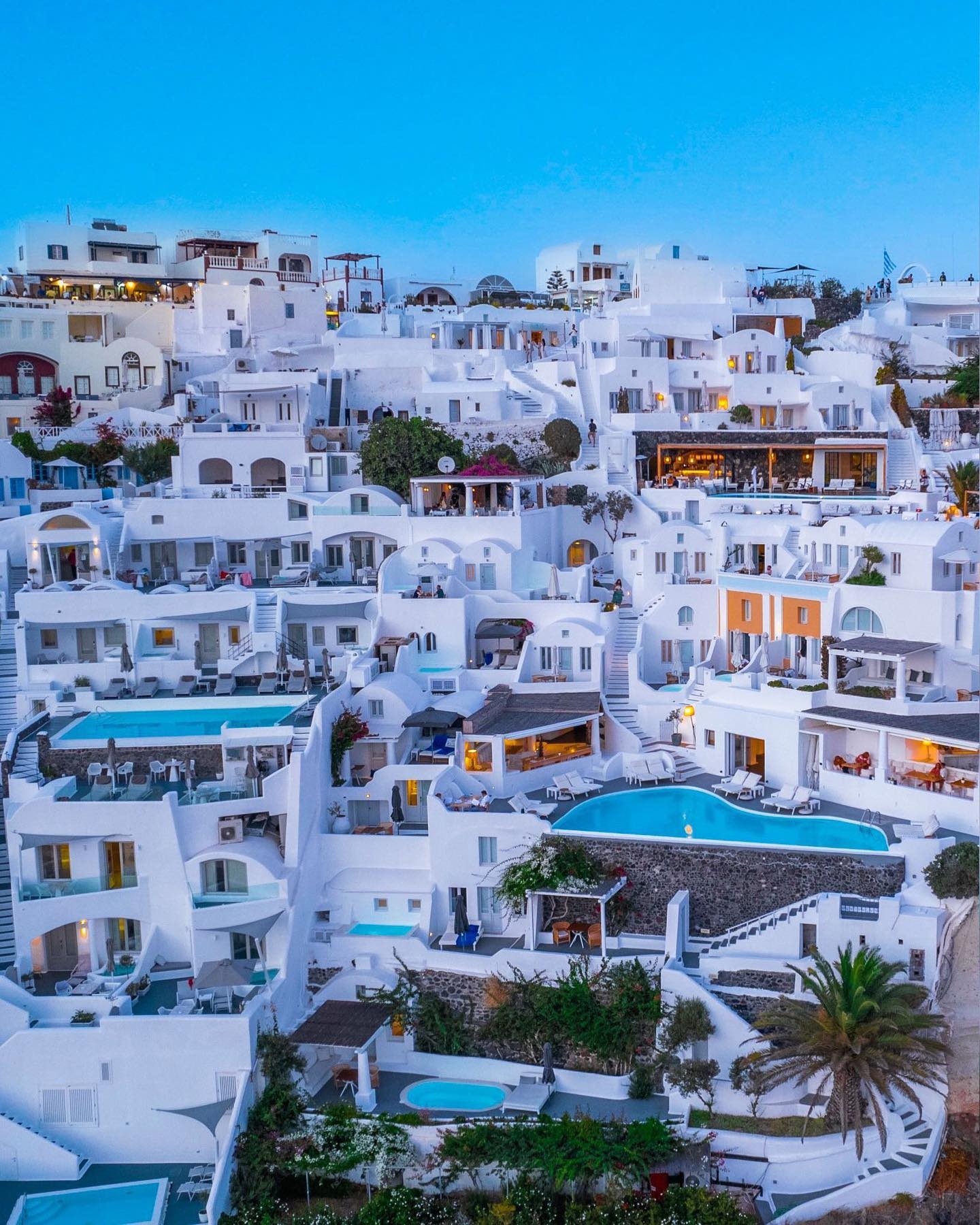 Tucked into Oia’s dramatic cliffs, this serene retreat dates back to the 18th century. It is primarily made up of two majestic suites that once belonged to a noble family that has now been renovated with a mix of antiques and serene blue hues against ochre facades. Beyond these, a collection of white-washed rooms and suites cascade down the cliffs like sugar cubes, all offering sea vistas and quaint patios with private freshwater pools. Awarded by Travel+Leisure 2023 World’s Best Awards and Condé Nast Traveler Readers’ Choice Awards 2023, it is a winning choice for anyone who can afford it.