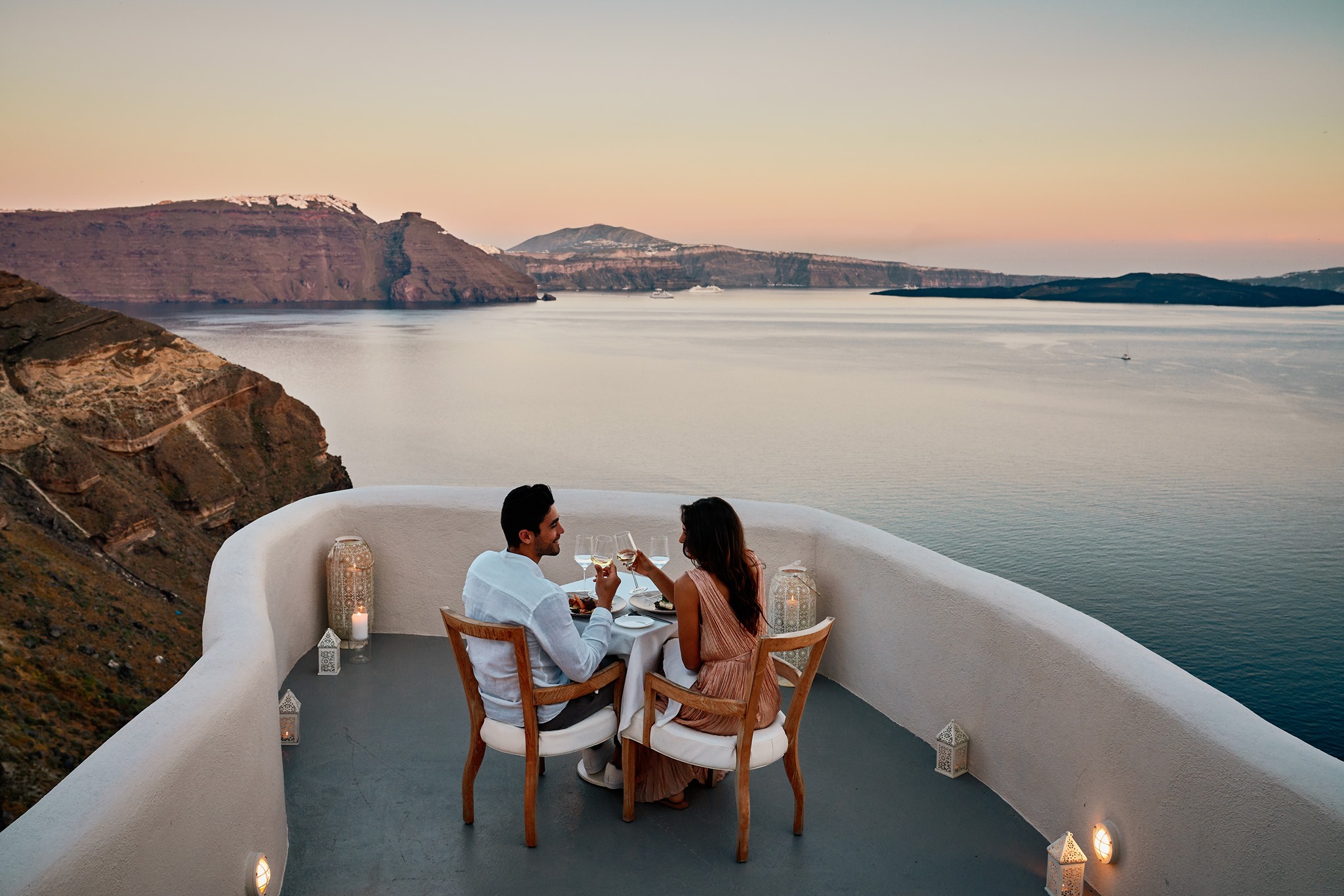 The word romance inherently equates with Santorini’s iconic cave hotels, carved into the island’s volcanic cliffs and overlooking magnificent views of the sea and the caldera. Add to the experience a private hot tub, infinity pools, indulgent services, an abundance of Instagrammable decor details, divine food and drinks and spectacular sunsets, and you have the nearest you’ll get to enjoying blissful perfection.