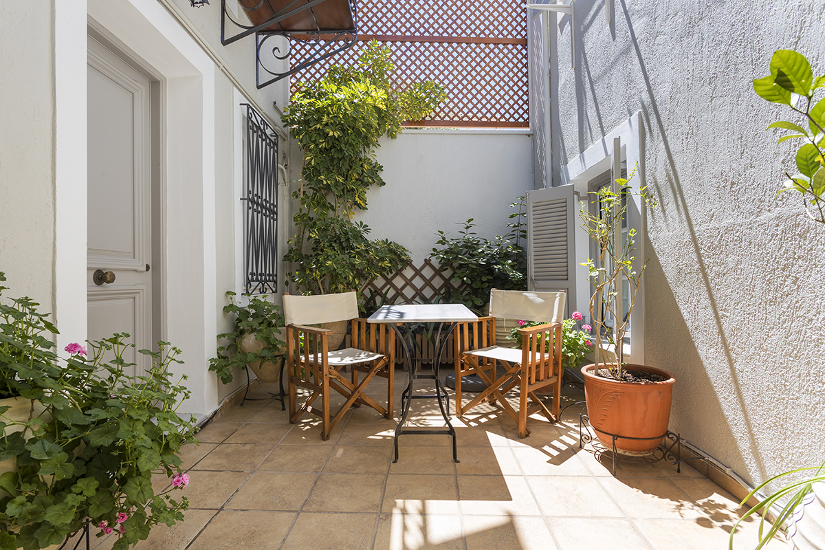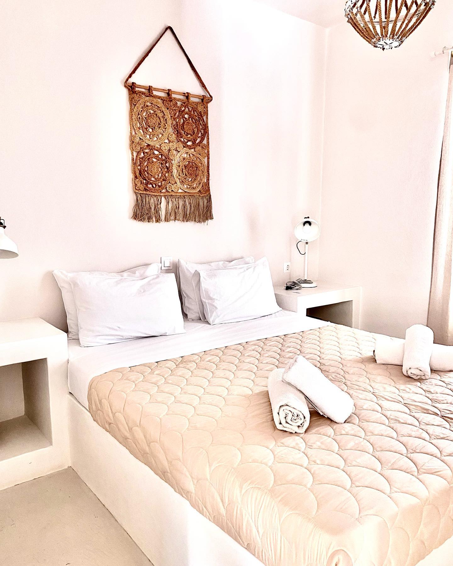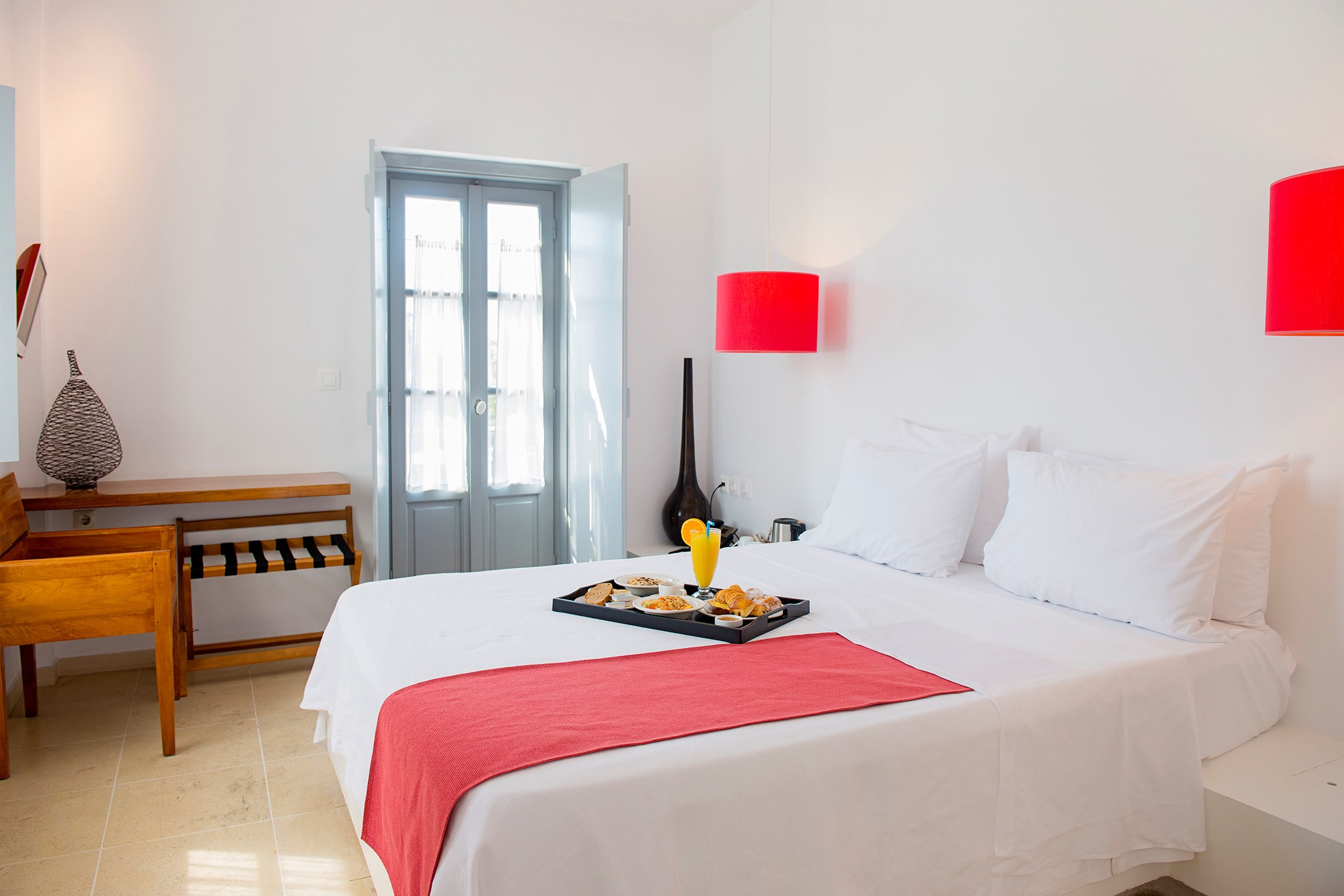 Niriides Guesthouse, a delightful boutique B&B, charms with its vibrant exteriors and floral surroundings. A mere few minutes’ walk from the main harbor, the guesthouse features minimalist white rooms with wooden shutters and wrought-iron beds. Open year-round, off-season rates may be negotiable and late checkouts available.