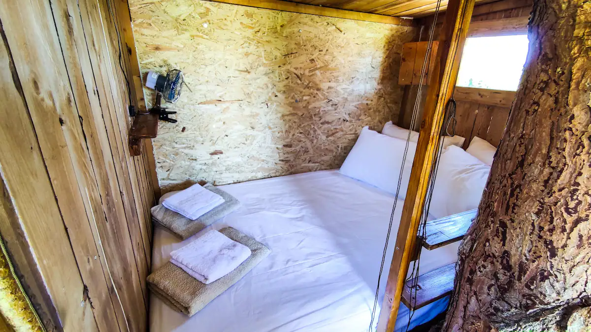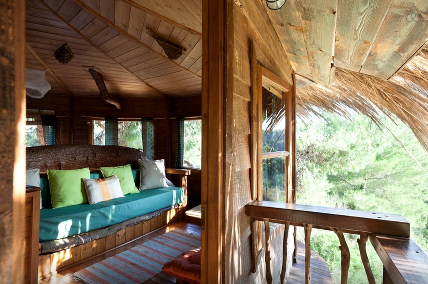 At Skala-Paramonas, on Corfu’s west coast, this treehouse is ideal for people seeking a deeply serene natural spot for relaxation – with their pets, if they so choose. It is on land surrounded by olive groves and combines a sensational sea view, from the treehouse’s front, with a mountain view at the back. The treehouse is built on a seven-metre olive tree. It features a double bed, hammock, bathroom and a balcony, and has access to a nearby beach.