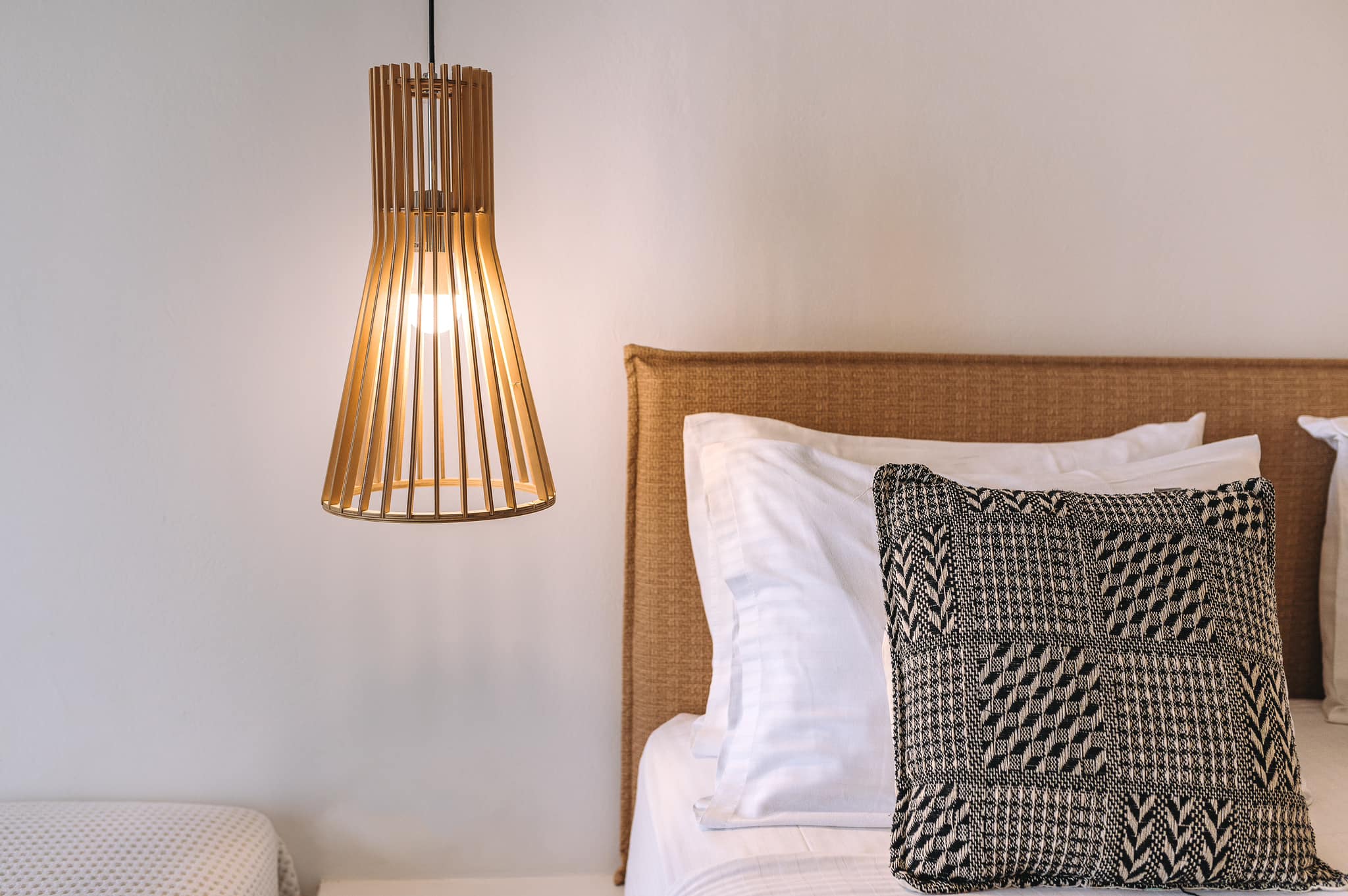 Overlooking Batsi Bay from a terraced hillside plot, this small complex includes studios and maisonettes designed for independent stays. Each unit has a kitchenette, private balcony or veranda, and open views toward the harbor. A central swimming pool with adjacent bar-restaurant forms the shared area. Interiors follow a minimalist Cycladic air with built-in furnishings in earthy elements (rattan, wood, marble) and bright white surfaces. The beach and harbor promenade are reachable on foot, allowing guests to move between swimming, dining, and evening walks without relying on a car.