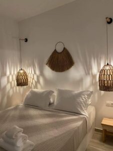 Operating from a restored stone mansion near Gavrio, this guesthouse offers rooms with private terraces set within garden grounds. Interiors are inspired by traditional island life with an elegant twist, with upcycled wooden antiques and stone floors consistent with local building customs. Breakfast is served on a shared outdoor terrace and emphasizes regional ingredients, and the outdoor BBQ is a meeting point for special nights. The beach is accessible on foot, and Gavrio’s port facilities are within short driving distance. The property appeals to independent travelers who prefer old villa-like accommodation over resort structures, and runs retreats for like-mined spirits.