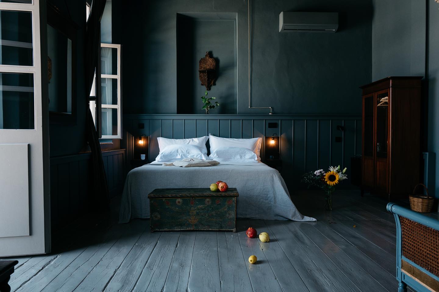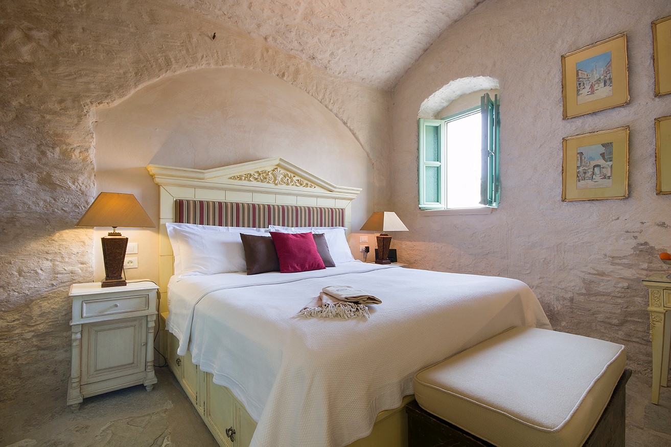 The restored buildings of the old market, along with the adjacent captain’s house, have been transformed into elegant accommodations since 2016. The decor is minimal, in earthy tones with colorful accents, and exposed stone is a feature in the suites and rooms. The standout is the Ottoman suite.