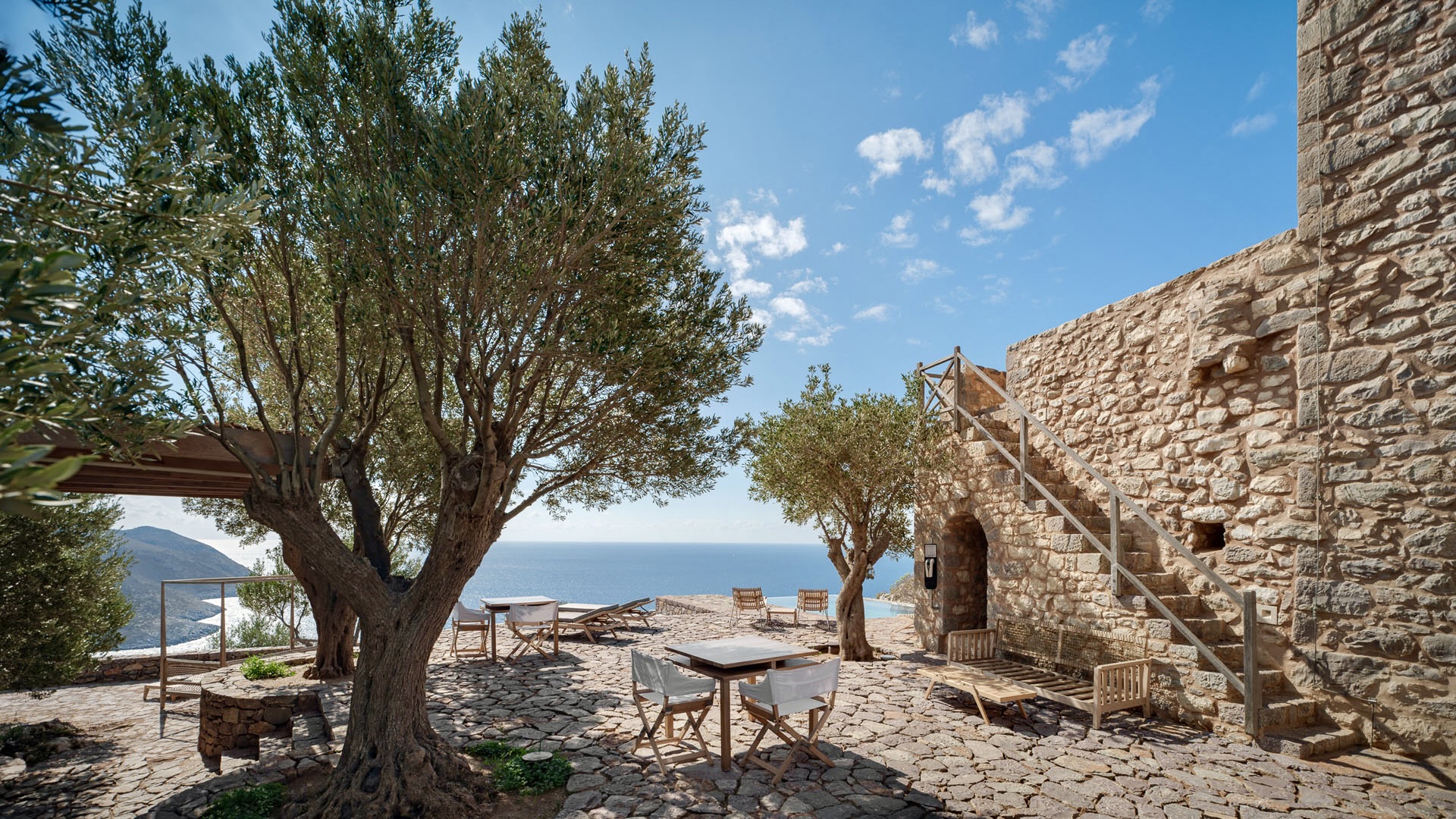 At the edge of the Peloponnese, where the land falls into the sea, Tainaron Blue Retreat transforms a centuries-old stone tower into an intimate escape. The three-room guesthouse holds onto its original structure, with thick stone walls and deep-set windows framing endless sea views. Guests sip coffee on the rooftop terrace, cool off in the infinity pool, and dine on Maniot specialties prepared with locally sourced ingredients. Sunrises here stretch across the horizon, slow and golden.